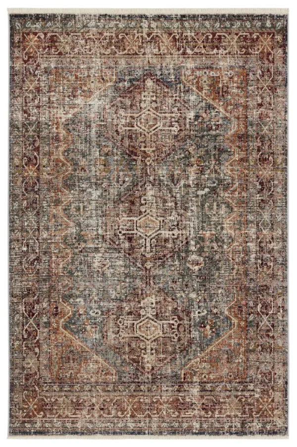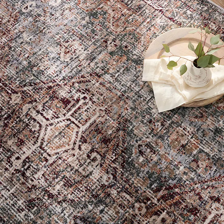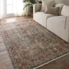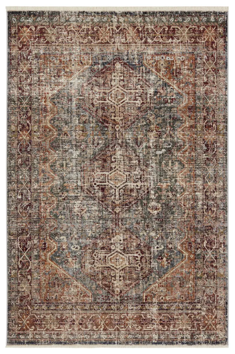 Inspired by the vintage perfection of sun-bathed Turkish designs, this collection showcases detailed traditional motifs that have been updated with on-trend, saturated colorways. Boasting a distressed traditional pattern in tones boasts a bold center medallion in moody tones of red, blue, cream, taupe, gray, tan, and green. This power-loomed rug features cotton fringe detailing, a natural result of weft yarns, that echoes hand-knotted construction and adds brilliant texture to the plush, durable polypropylene pile.