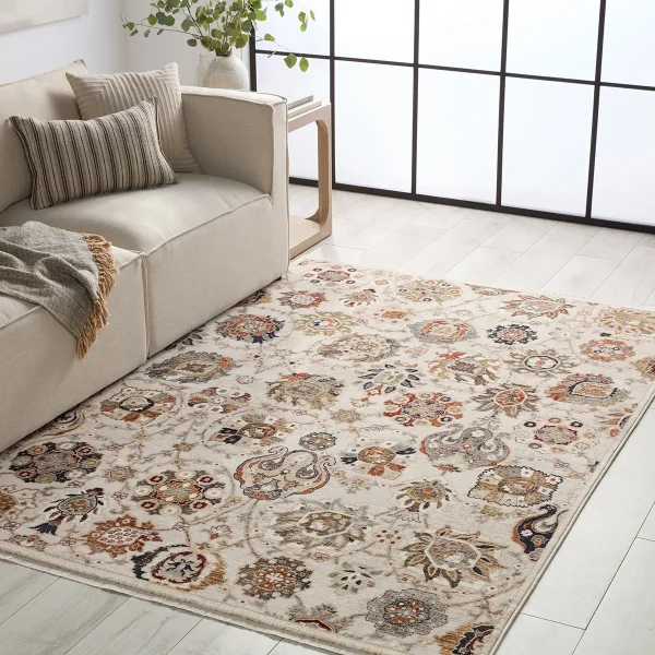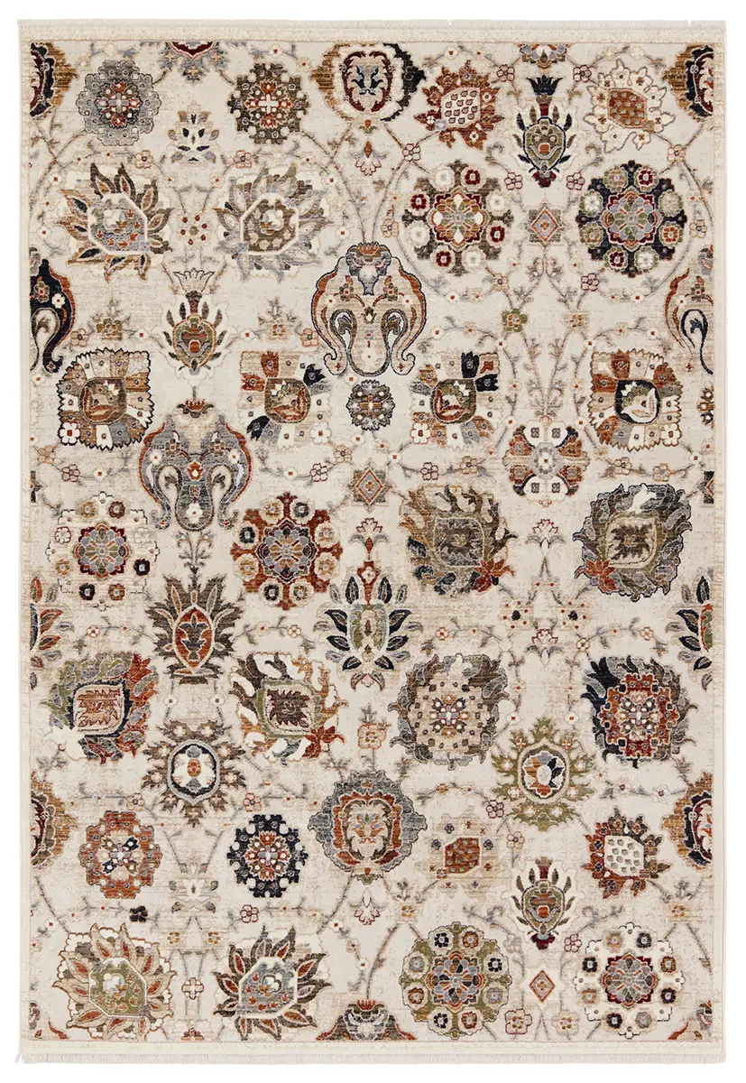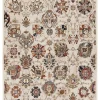 Inspired by the vintage perfection of sun-bathed Turkish designs, this collection showcases detailed traditional motifs that have been updated with on-trend, saturated colorways. Boasting a distressed traditional pattern in tones boasts a bold center medallion in moody tones of cream, red, blue, gray, green, orange, and beige. This power-loomed rug features cotton fringe detailing, a natural result of weft yarns, that echoes hand-knotted construction and adds brilliant texture to the plush, durable polypropylene pile.