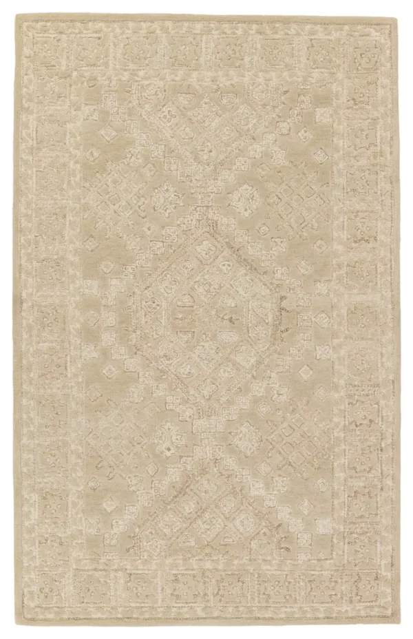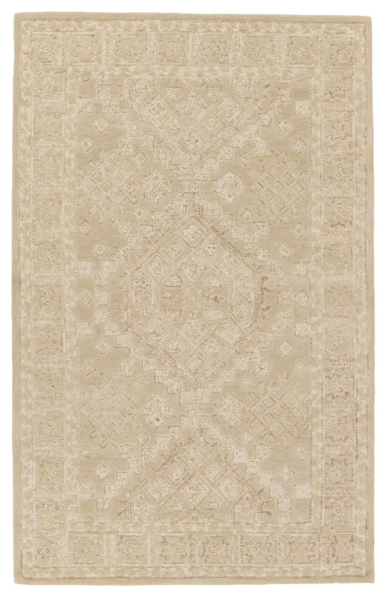 The FARDIR collections boasts masterfully hand-tufted designs with stunning detail and versatile colorways. The rug features a tribal-inspired center medallion in warm hues of tan and cream. This transitional design is crafted of durable wool and complements a variety of styles, from global to rustic decor. The durable pile suits both high and low traffic areas in the home, such as living rooms, dining areas, bedrooms, halls, entryways, and sitting rooms.