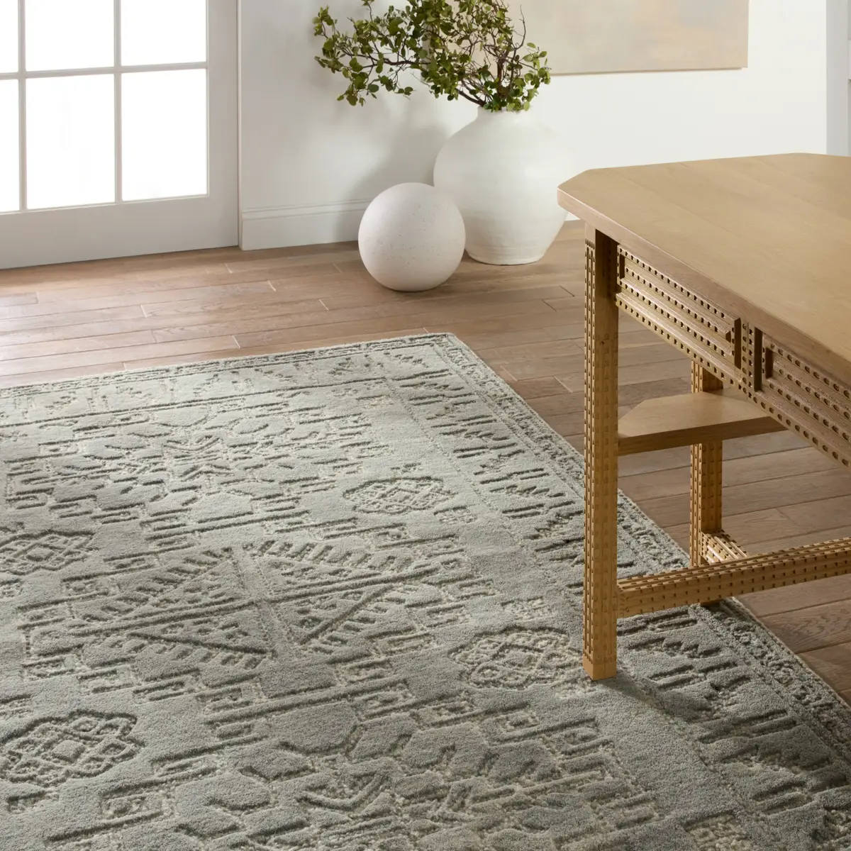 The FARDIR collections boasts masterfully hand-tufted designs with stunning detail and versatile colorways. The rug features a tribal-inspired center medallion in muted hues of gray, heathered green, and cream. This transitional design is crafted of durable wool and complements a variety of styles, from global to rustic decor. The durable pile suits both high and low traffic areas in the home, such as living rooms, dining areas, bedrooms, halls, entryways, and sitting rooms.