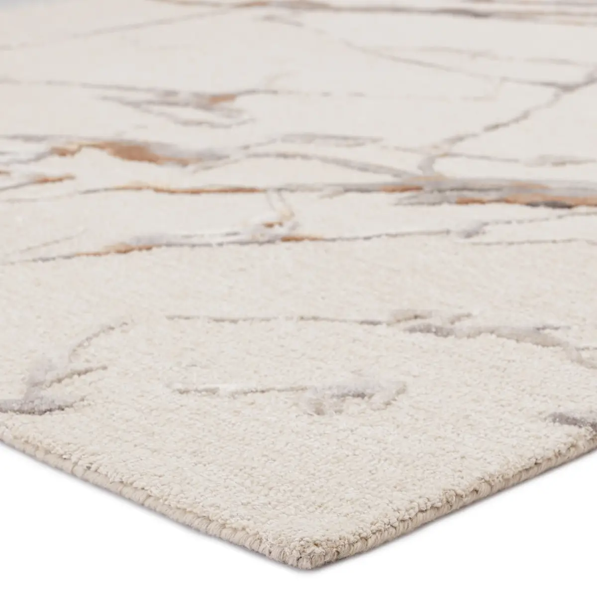 The hand-tufted FRGDIR collection features nature and mineral-inspired motifs that offer the perfect patterned intrigue to modern spaces. The Shattered rug features a fractured abstract design in a neutral colorway of cream, silver and charcoal gray, soft gold, and taupe. The cut and looped pile combines with a luxe wool-viscose blend for a stunning range of texture, luster, and dimension.