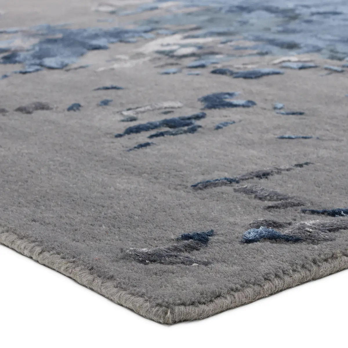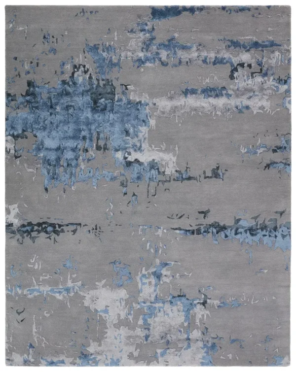The hand-tufted FRGDIR collection features nature and mineral-inspired motifs that offer the perfect patterned intrigue to modern spaces. The Astris rug showcases a fluid abstract design in a cool colorway of light and deep tonal blues, and silver gray. The high-low pile boasts a luxe wool-viscose blend for a stunning range of texture, luster, and dimension.