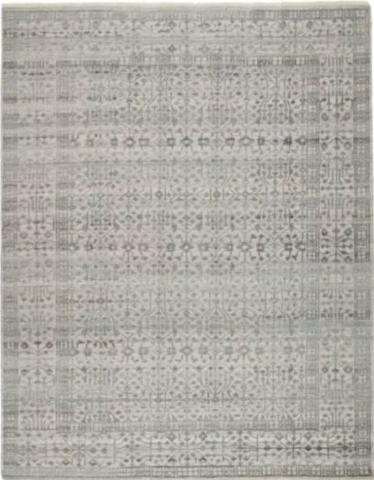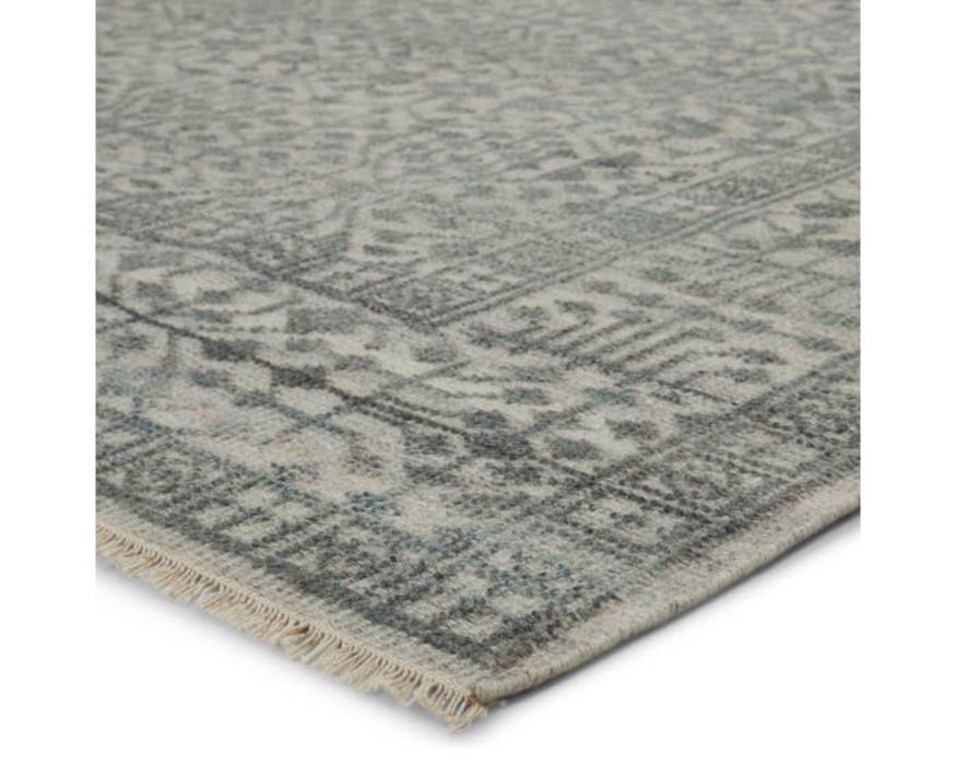 Boasting an assortment of transitional filigree motifs in easily decorated color schemes. Crafted with a high-low carved texture, the hand-knotted rug features a tonal gray colorway with hints of blue for a soft and serene look. The space-dyed effect of the wool and viscose yarns lends a one-of-a-kind quality to every design.