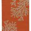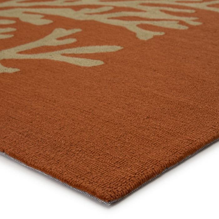 This playful indoor or outdoor area rug showcases a contemporary design and coastal-inspired hues. Neutral taupe branches of coral create a graphic statement on the bold orange backdrop for beach-worthy style, while the looped pile lends unexpected texture to this durable layer.