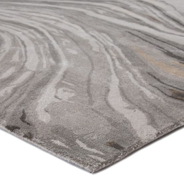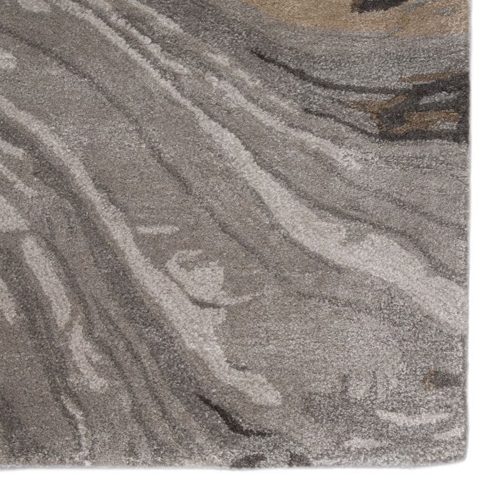 Chic gold and gray hues create an elegant marbled design on this area rug. Lustrous viscose adds a striking sheen to the natural wool fibers for a final touch of glamour.