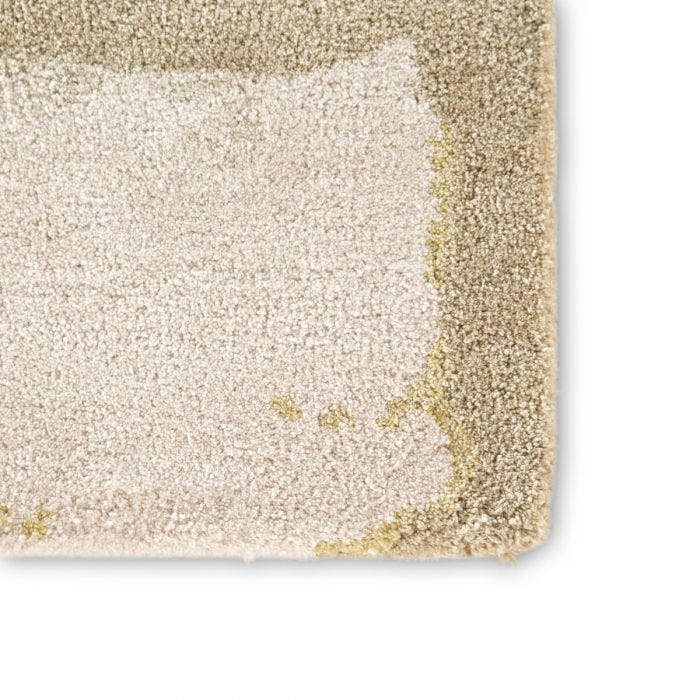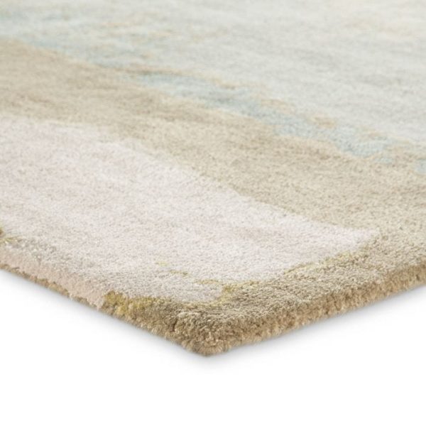 Painterly perfection describes this rug. An abstract design in serene pastel hues and hints of blush recall an elegant landscape motif, highlighted in lustrous viscose and plush wool.