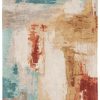 Captivating with a painterly abstract design inspired by the expressionist effect of modern art. Dynamic hues of terracotta, gold, teal, and blue mix with neutral ivory and gray on this luxurious wool and viscose accent.