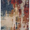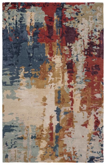 Punctuated by bold colors of blue, red, gold, and purple, the design boasts a mottled abstract pattern for an eclectic touch of style. Lustrous viscose blends elegantly with the natural wool fibers for a plush and ultra-soft feel.