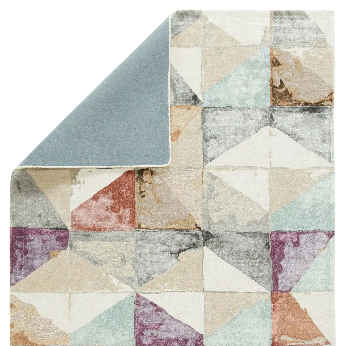 With a whimsical spirit and sophisticated flair, the GESDIR collection features an assortment of hand-tufted rugs sure to liven any contemporary home. The captivating rug showcases a bold geometric design in the perfect blend of neutral and vibrant hues. This eye-catching design features tones of gray, ivory, beige, gold, blue, purple, and clay. Lustrous viscose blends elegantly with the natural wool fibers for a plush and ultra-soft feel.