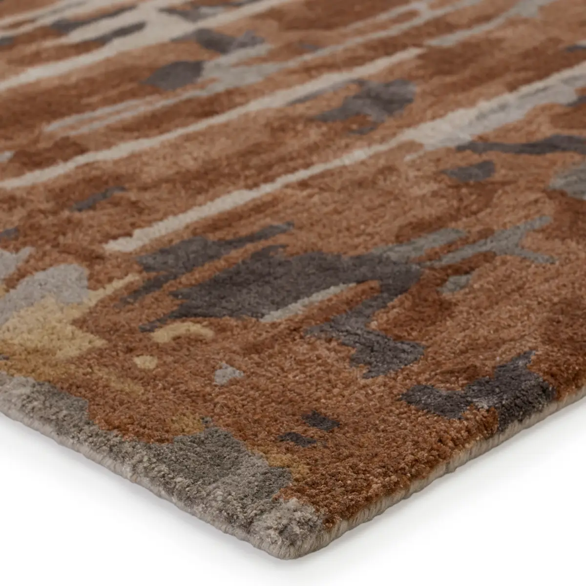 With a whimsical spirit and sophisticated flair, the GESDIR collection features an assortment of hand-tufted rugs sure to liven any contemporary home. Punctuated by bold color, the design boasts a mottled abstract pattern for an eclectic touch of style. Tones of gray, bronze, copper, charcoal, and tanĀ mix together for a mineral-inspired palette. Lustrous viscose blends elegantly with the natural wool fibers for a plush and ultra-soft feel.