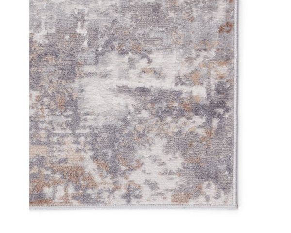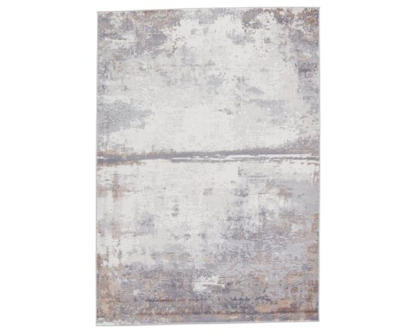 The modern GRODIR collection boasts a neutral palette with subtle pops of color combined with formation-like motifs. The textural yet versatile rug grounds any space with a striking abstract pattern in tones of light gray, ivory, gold. Perfect for heavily trafficked spaces, this polyester-polypropylene blend rug is easy to clean and perfect for homes with pets and children.