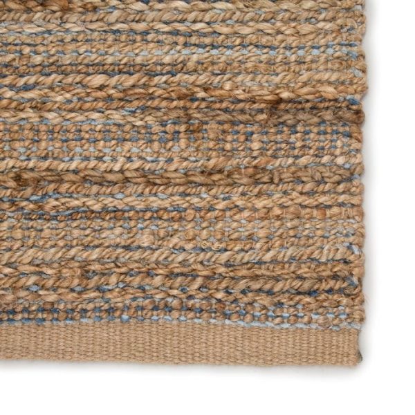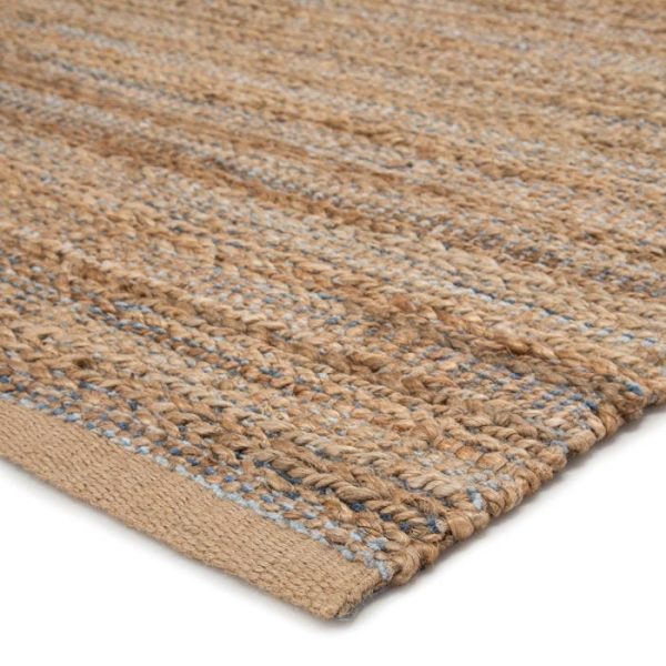 A natural area rug with a contemporary touch, this cotton-backed layer’s warm beige tone and hints of blue striated accents make a cool, casual statement. The organic texture of the hand-woven rayon and jute fibers offers an intriguing feel and bohemian-inspired style.