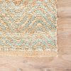 A natural area rug with a contemporary touch, this cotton-backed layer’s rich tan tone and hints of pale green striated accents make a dimensional impact with a chevron weave. The organic texture of the hand-woven rayon and jute fibers offers an intriguing feel and bohemian-inspired style.