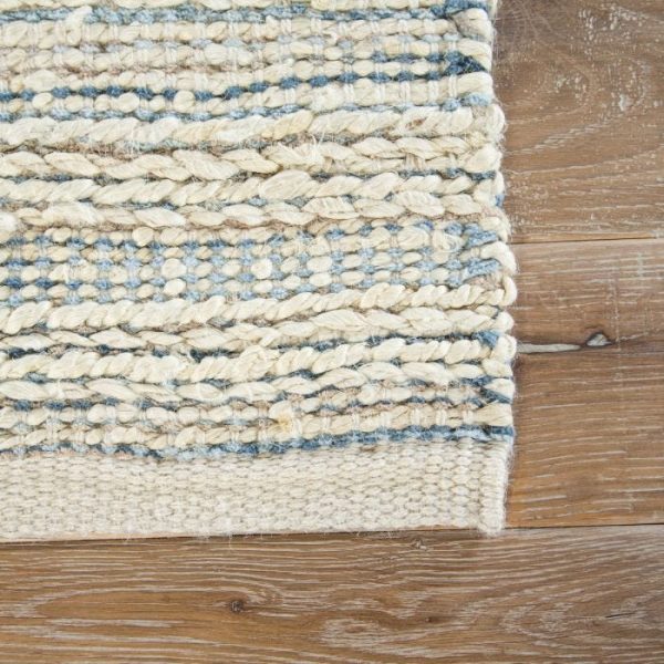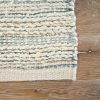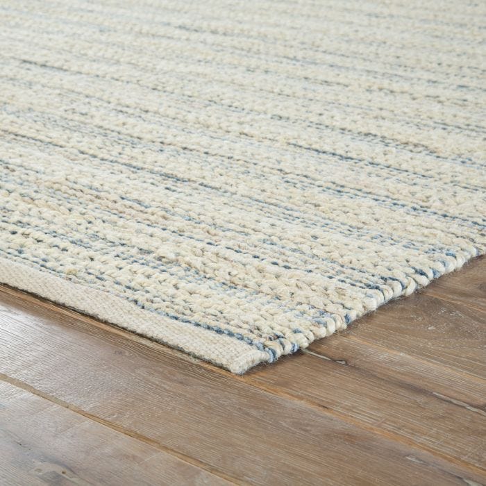 A natural area rug with a contemporary touch, this cotton-backed layer pops with a bleached white tone and hints of blue striated accents. The organic texture of the hand-woven rayon and jute fibers offers an intriguing feel and bohemian-inspired style.