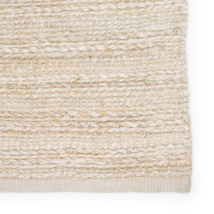 A natural area rug with a contemporary touch, this cotton-backed layer’s creamy natural and bleached white striated accents make a cool, casual statement. The organic texture of the hand-woven rayon and jute fibers offers an intriguing feel and bohemian-inspired style.