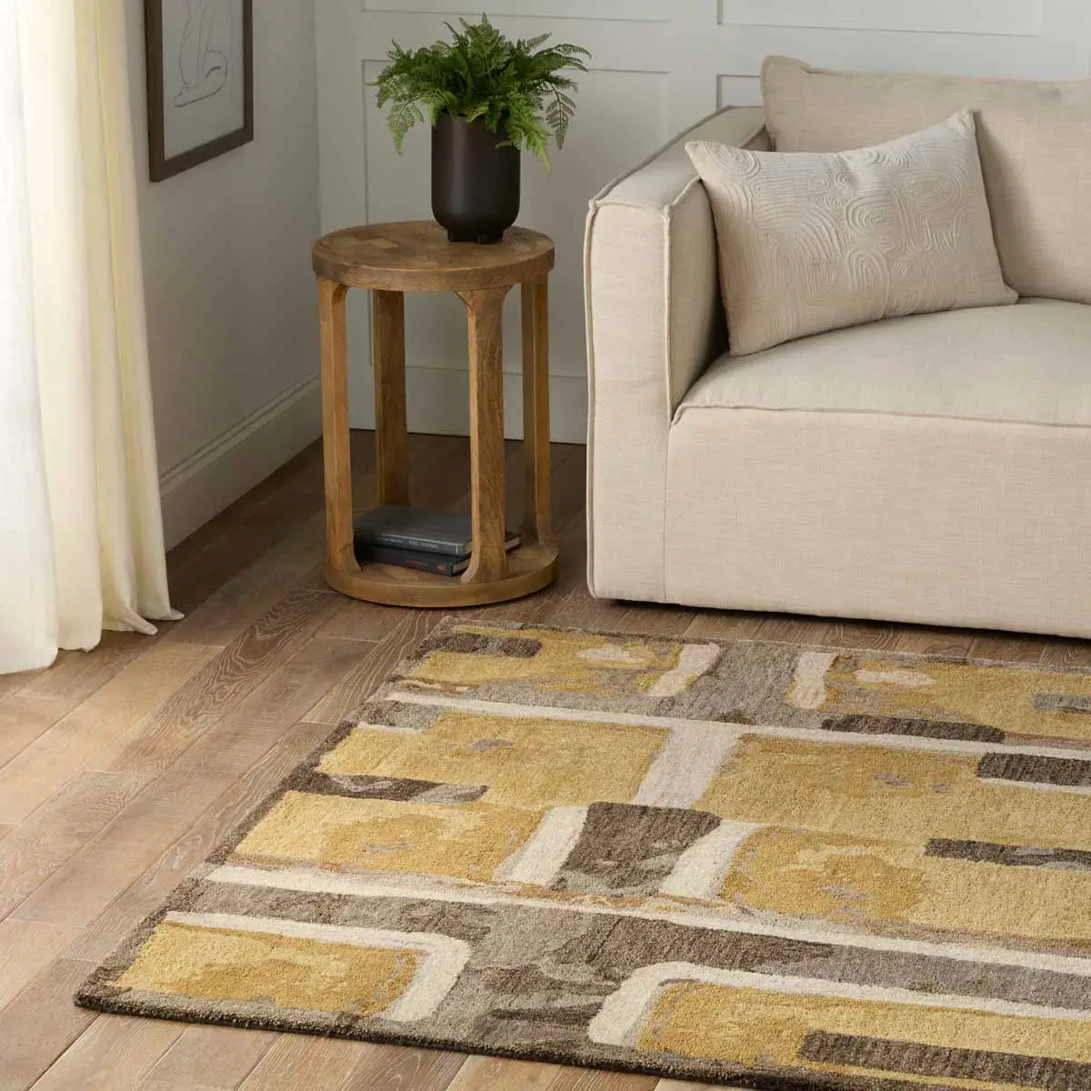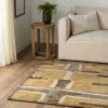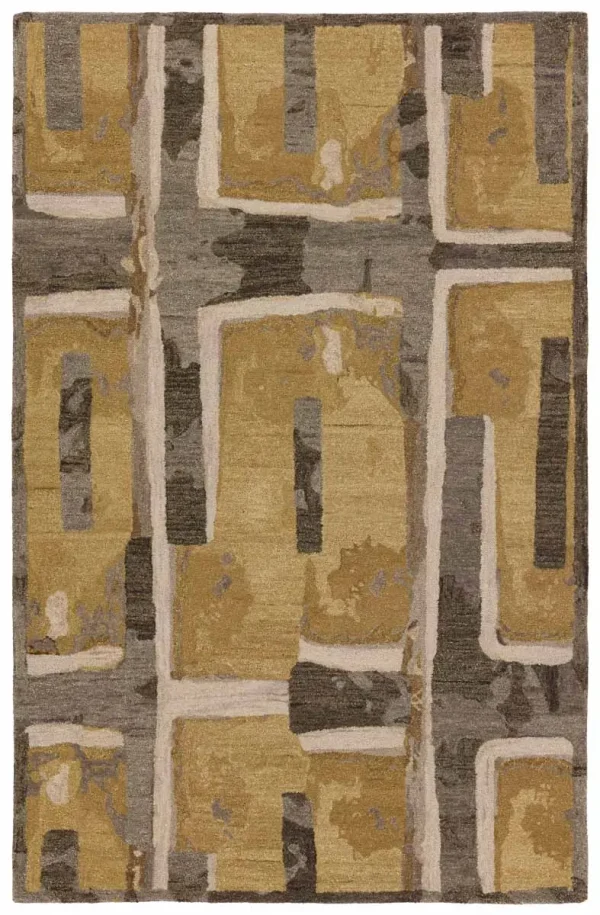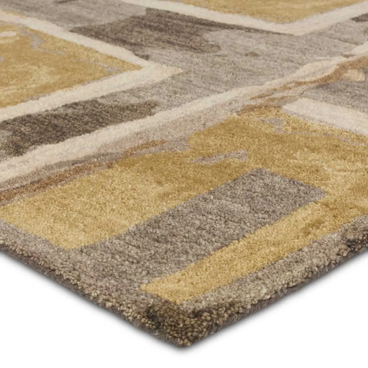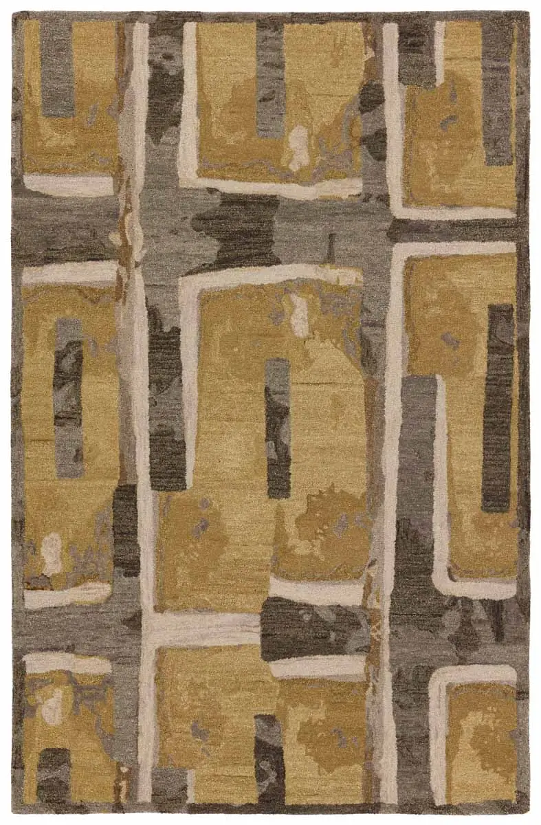 The HNCDIR collection design is an homage to natural forms, their richness, their warmth, and their transformational shapes and colors which provide sustenance, structure and nuance to an interior space. The design features an abstract geometric pattern that nods to mid-century modern style. The yellow, taupe, brown, gray, and cream colorway provide a modern look in any medium traffic space in the home such as bedrooms, dining rooms, and formal living rooms.
