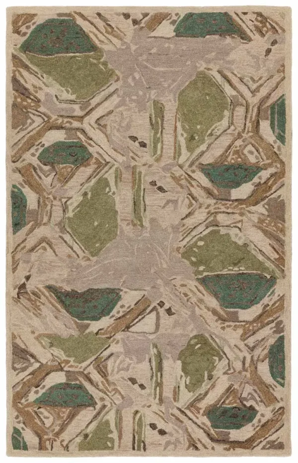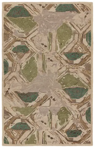 The HNCDIR collection design is an homage to natural forms, their richness, their warmth, and their transformational shapes and colors which provide sustenance, structure and nuance to an interior space. The design features an abstract trellis pattern that nods to mid-century modern style. The green, taupe, cream, gray, and muted-gold colorway provide a modern look in any medium traffic space in the home such as bedrooms, dining rooms, and formal living rooms.