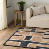 The HNCDIR collection design is an homage to natural forms, their richness, their warmth, and their transformational shapes and colors which provide sustenance, structure and nuance to an interior space. The design features an abstract geometric pattern that nods to mid-century modern style. The tan, blue, cream, gray, taupe, and peach colorway provide a modern look in any medium traffic space in the home such as bedrooms, dining rooms, and formal living rooms.