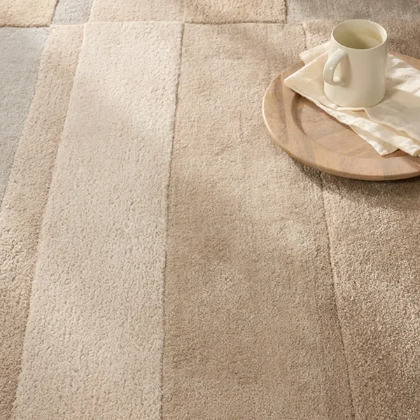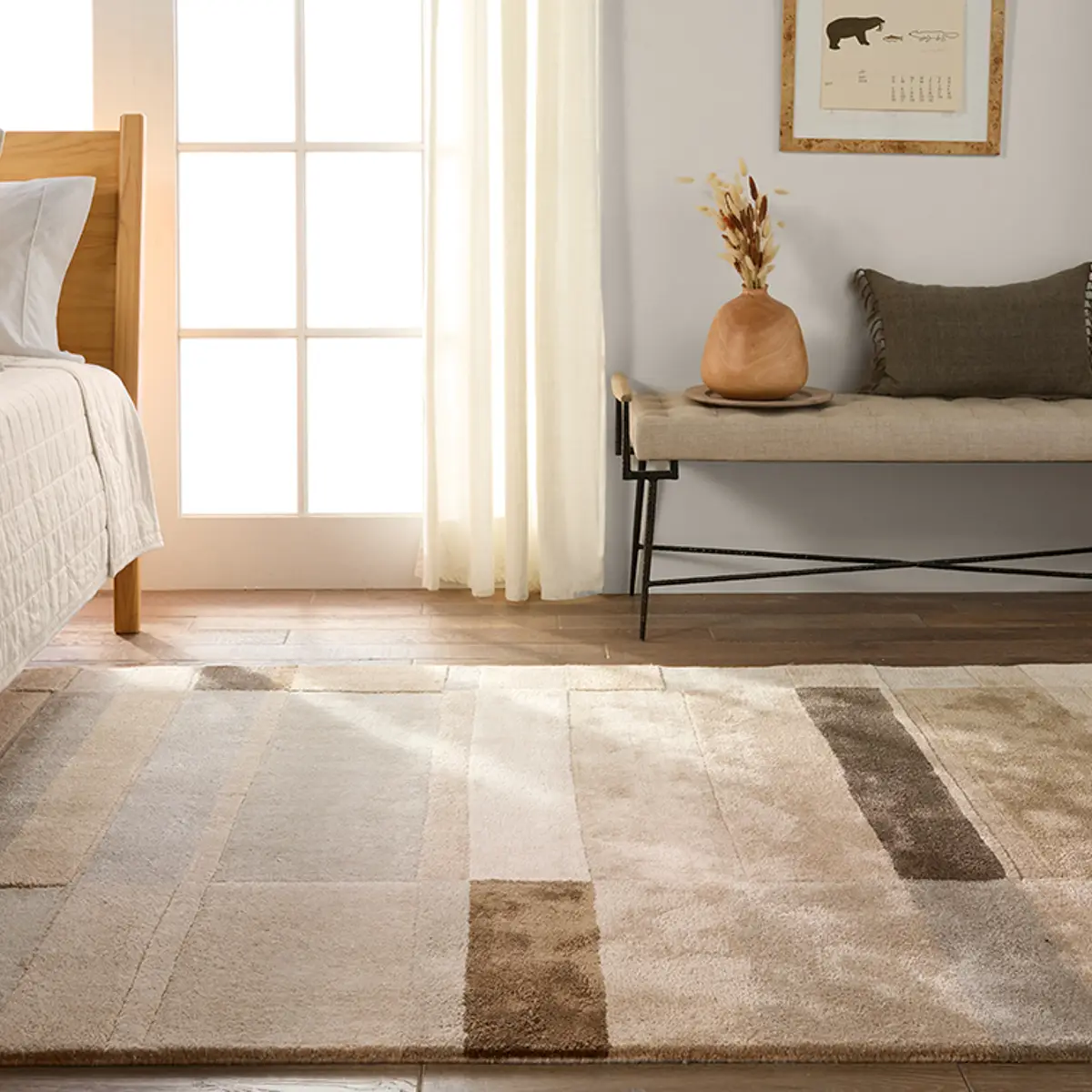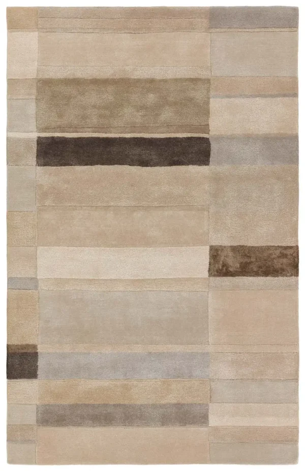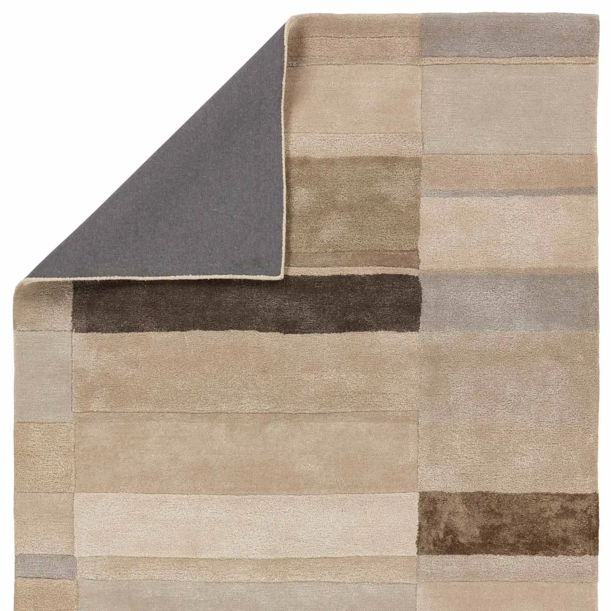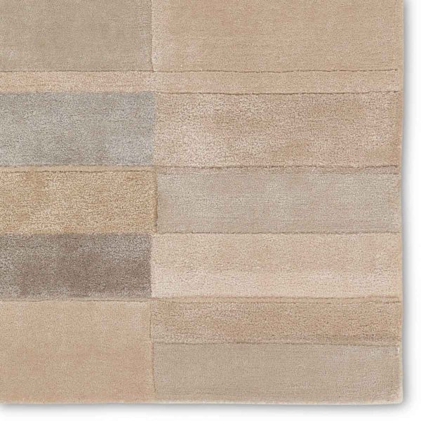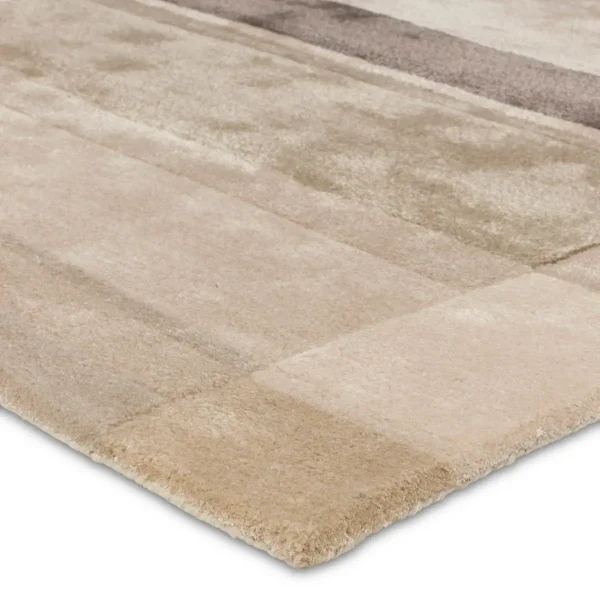 The sleek and angular ICODIR collection infuses interiors with bold colorways and modern style. A playful geometric motif and on-trend tan, gray, cream, and beige colorway. Hand tufted of viscose and New Zealand wool, this fresh accent boasts cut and looped pile for added texture and dimension.