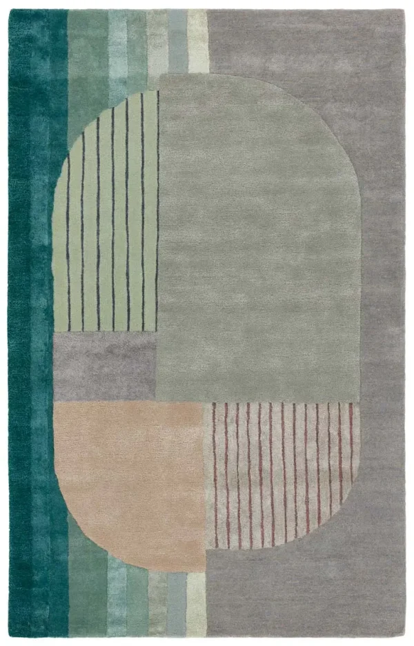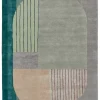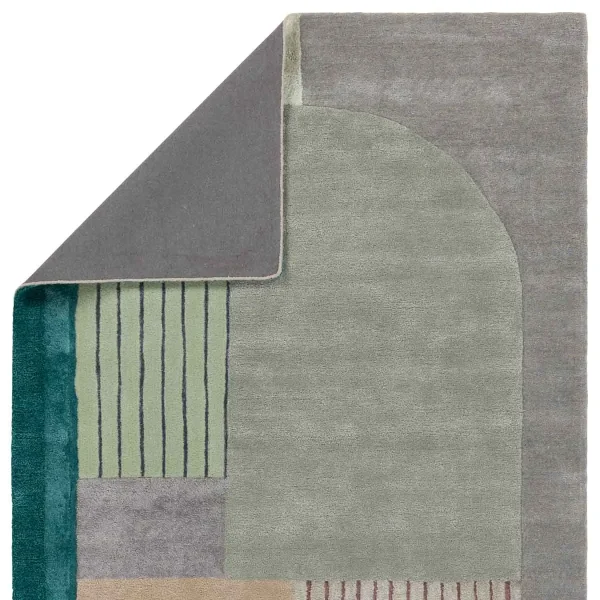 The sleek and angular ICODIR collection infuses interiors with bold colorways and modern style. A playful geometric motif and on-trend sage, teal, gray, taupe, and mauve colorway come together to form the rug. Hand tufted of viscose and New Zealand wool, this fresh accent boasts cut and looped pile for added texture and dimension.
