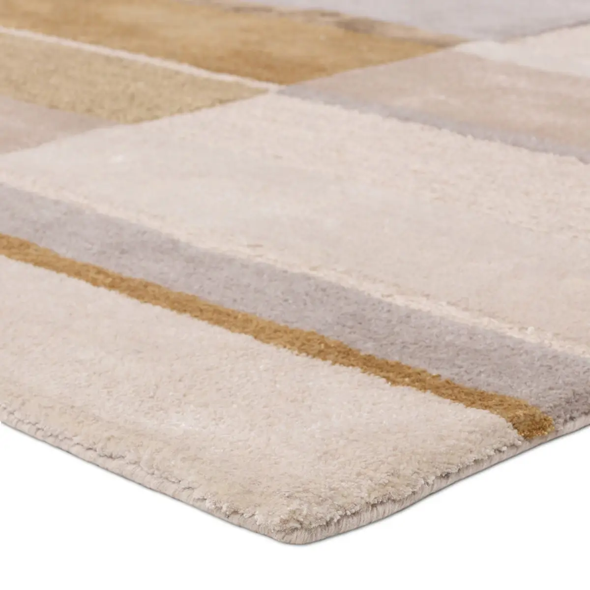 The sleek and angular ICODIR collection infuses interiors with bold colorways and modern style. A playful geometric motif and on-trend tan, gray, cream, and beige colorway come together to form the quirky rug. Hand tufted of viscose and New Zealand wool, this fresh accent boasts cut and looped pile for added texture and dimension.