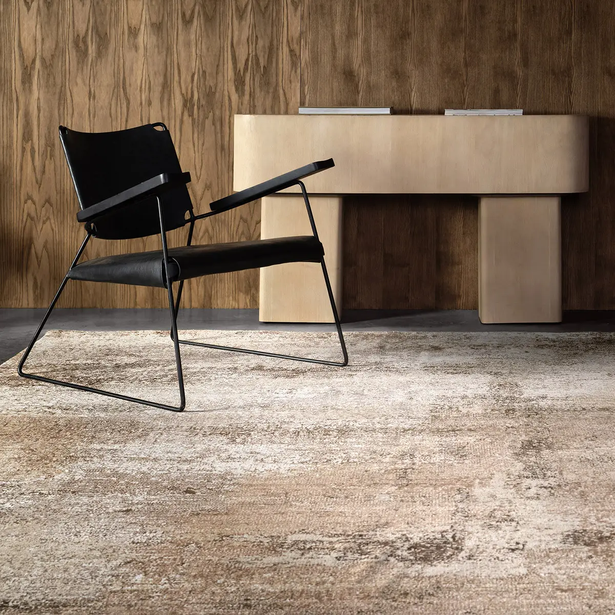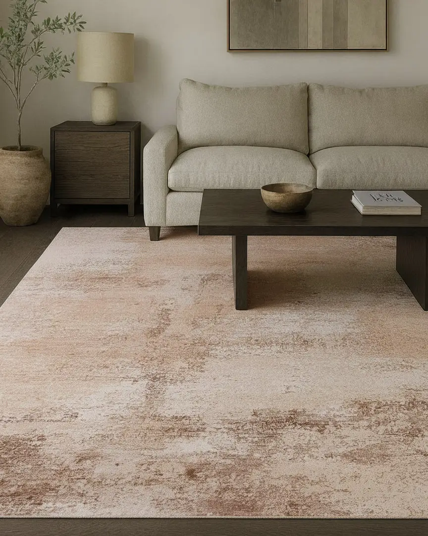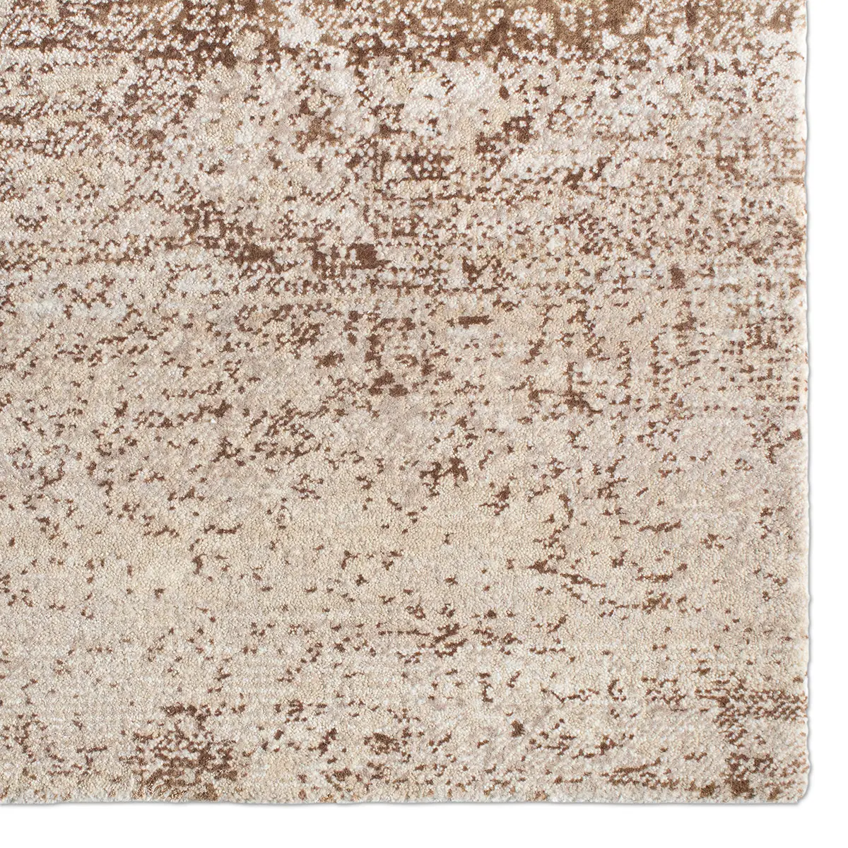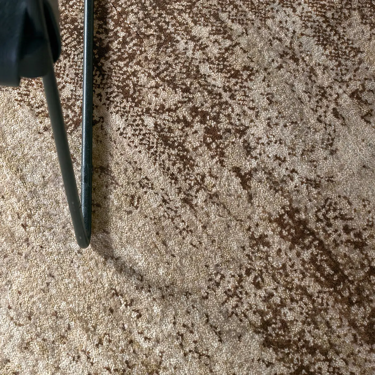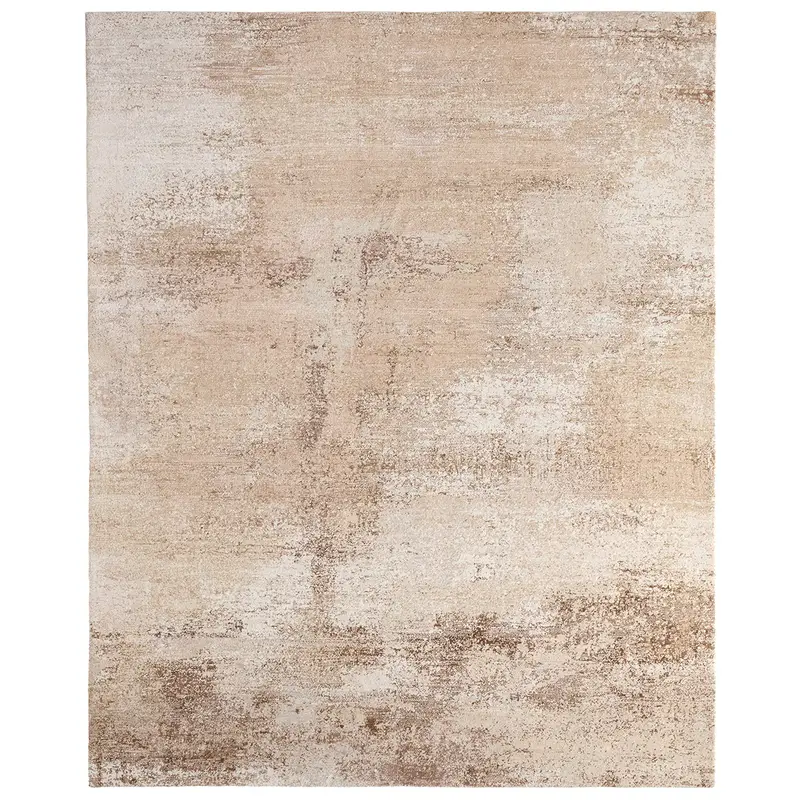The IGKDIR collection showcases a striking abstract composition in rich brown and warm tan-beige hues. Handcrafted in a refined wool-blend pile, it offers an inviting softness paired with an undeniable, light-catching sheen—creating a sophisticated, grounding presence for any space.