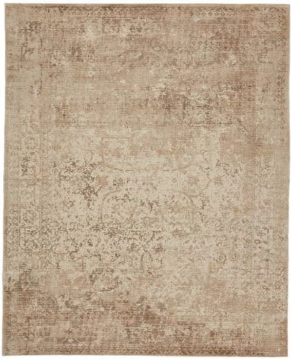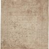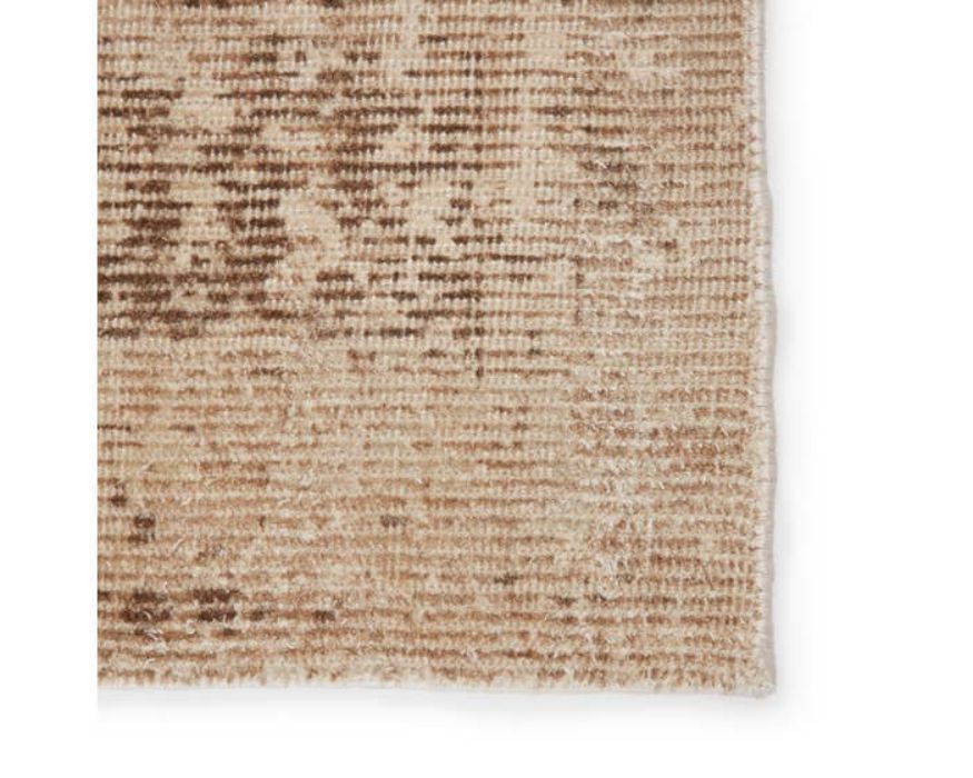 The elegant collection features subtle hand-printed motifs on artisan-made hand-loomed construction. Crafted of wool and rayon made from bamboo, the incredibly soft rug is the ideal combination of transitional style and luxurious comfort. The ornate pattern boasts a washed, vintage look in light, neutral tones of beige and taupe.