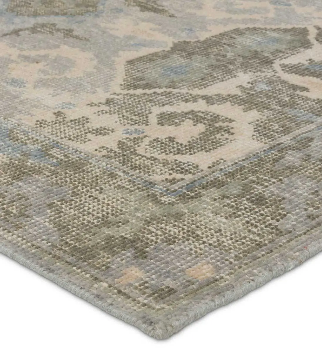 The artisan-made KAIDIR collection effortlessly blends the contemporary influence of color with traditionally timeless looks. Exceptionally made and artfully designed, the hand knotted area rug infuses homes with vintage allure. This wool accent boasts an elegant center medallion and scrolling details for a worldly dose of style. Sage, light blue, and gray tones offer a versatile look to the timeless design.