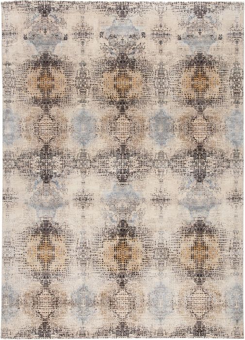 Infusing homes with captivating modern designs and timeless artisan-made beauty. The? statement-making kaleidoscopic motif showcases an ethereal abrash effect of blue, gold, and gray tones. Hand knotted of luxurious silk and natural wool, this stunning rug brings artistry and brilliance to any space.