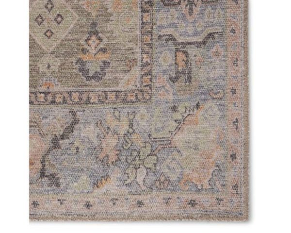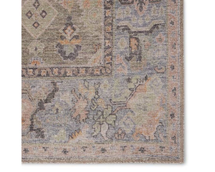 Melding the timelessness of vintage designs with modern, livable style. This rug’s faded green, earthy tan, and blue tones ground spaces with luxe appeal and an ornate, classic motif. This low-pile rug is made of soft polyester and features a stunning, Old World-inspired digitally printed design.