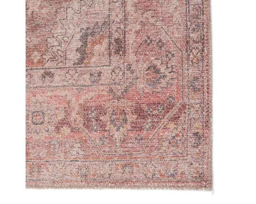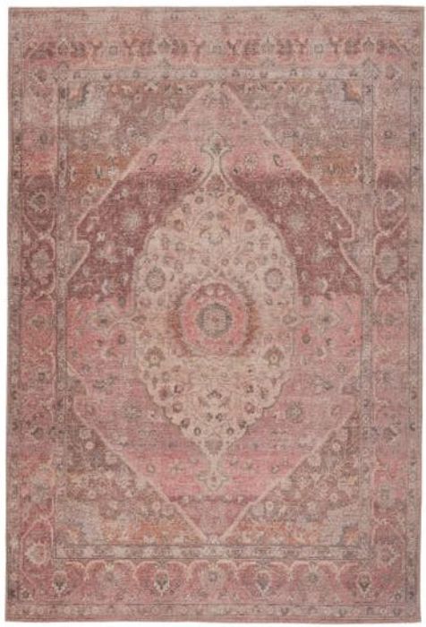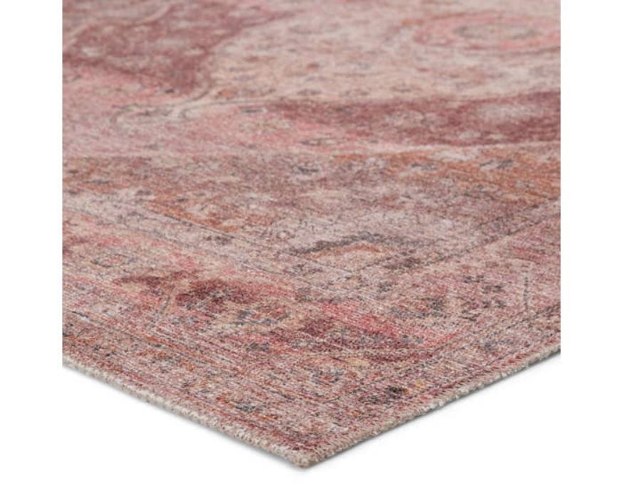 Melding the timelessness of vintage designs with modern, livable style. In faded tones of dusty pink, warm tan, plum, and beige, the statement-making rug ground spaces with luxe appeal and a classic center medallion motif. This low-pile rug is made of soft polyester and features a stunning, Old World-inspired digitally printed design.