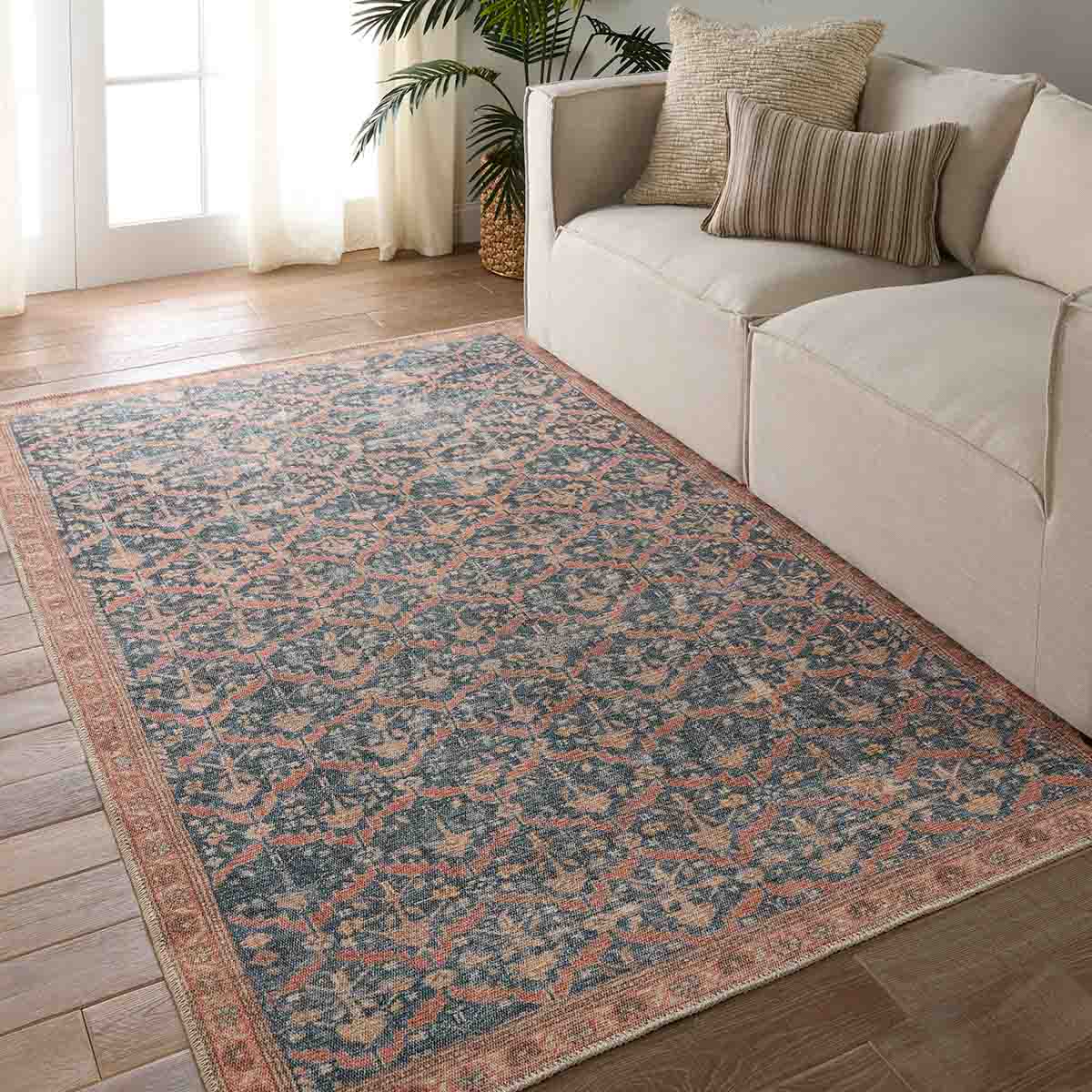 Melding the timelessness of vintage designs with modern, livable style. The area rug boasts an elegantly distressed Turkish diamond pattern in contemporary tones of navy, rust, pink, brown, and cream. This low-pile rug is made of soft polyester and features a one-of-a-kind antique rug digitally printed design. This low-pile rug is made of soft polyester and features a stunning, Old World-inspired digitally printed design.