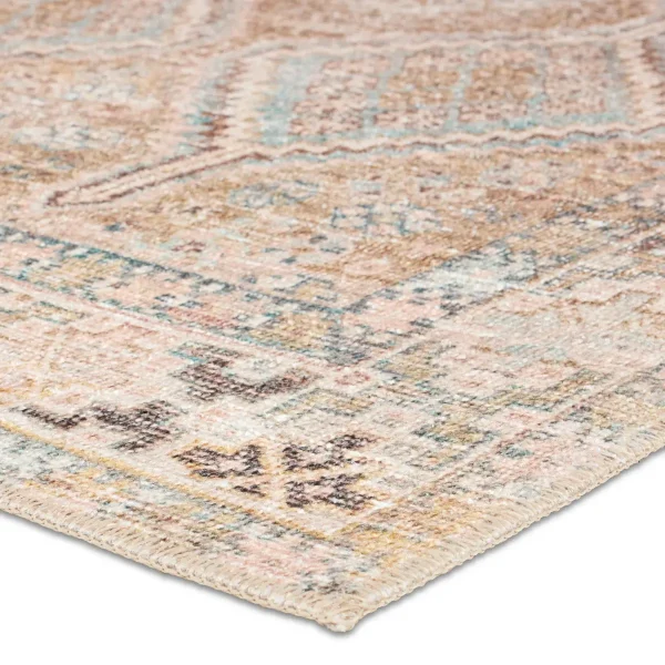 Melding the timelessness of vintage designs with modern, livable style. The area rug boasts an elegantly distressed Turkish diamond pattern in contemporary tones of blue, gold, and brown. This low-pile rug is made of soft polyester and features a one-of-a-kind antique rug digitally printed design.
