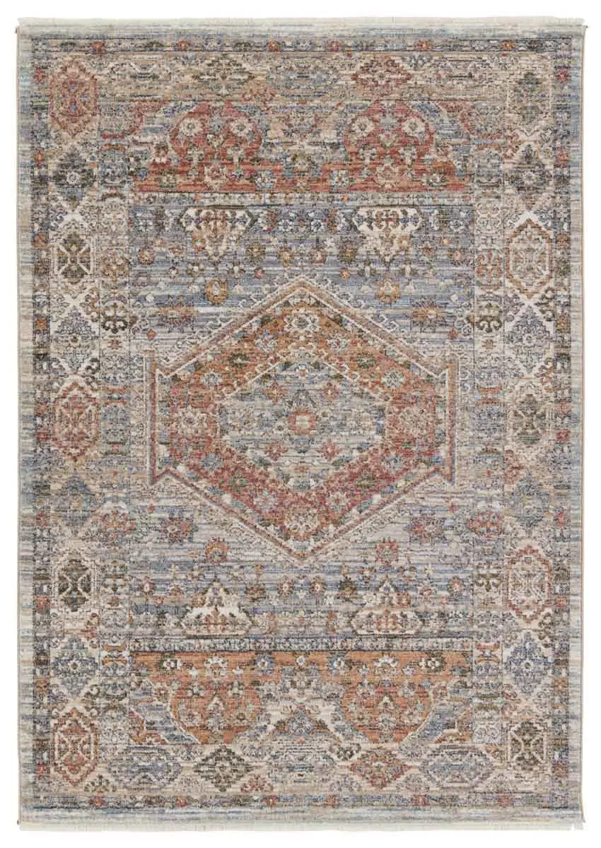 Inspired by the distressed perfection of antique textiles, the LARDIR collection is warm and inviting with rich, updated hues. The updated traditional Madrid area rug showcases an intricate medallion and border design paired with short, cream fringe. The geometric details spring to life in hues of red, blue, gold, dark green, beige, and cream. This indoor rug thrives in high and low trafficked areas of the home such as living rooms, halls, entryways, bedrooms, and dining areas.