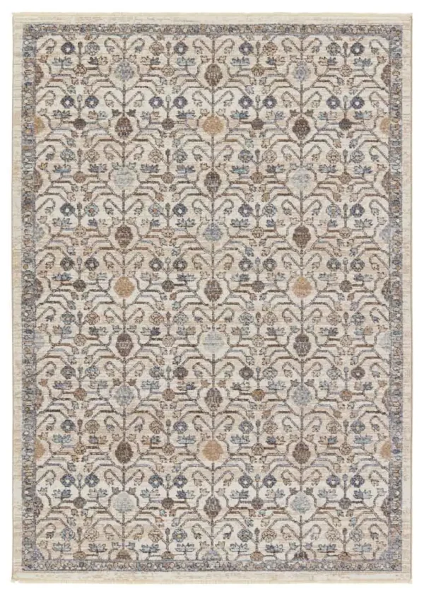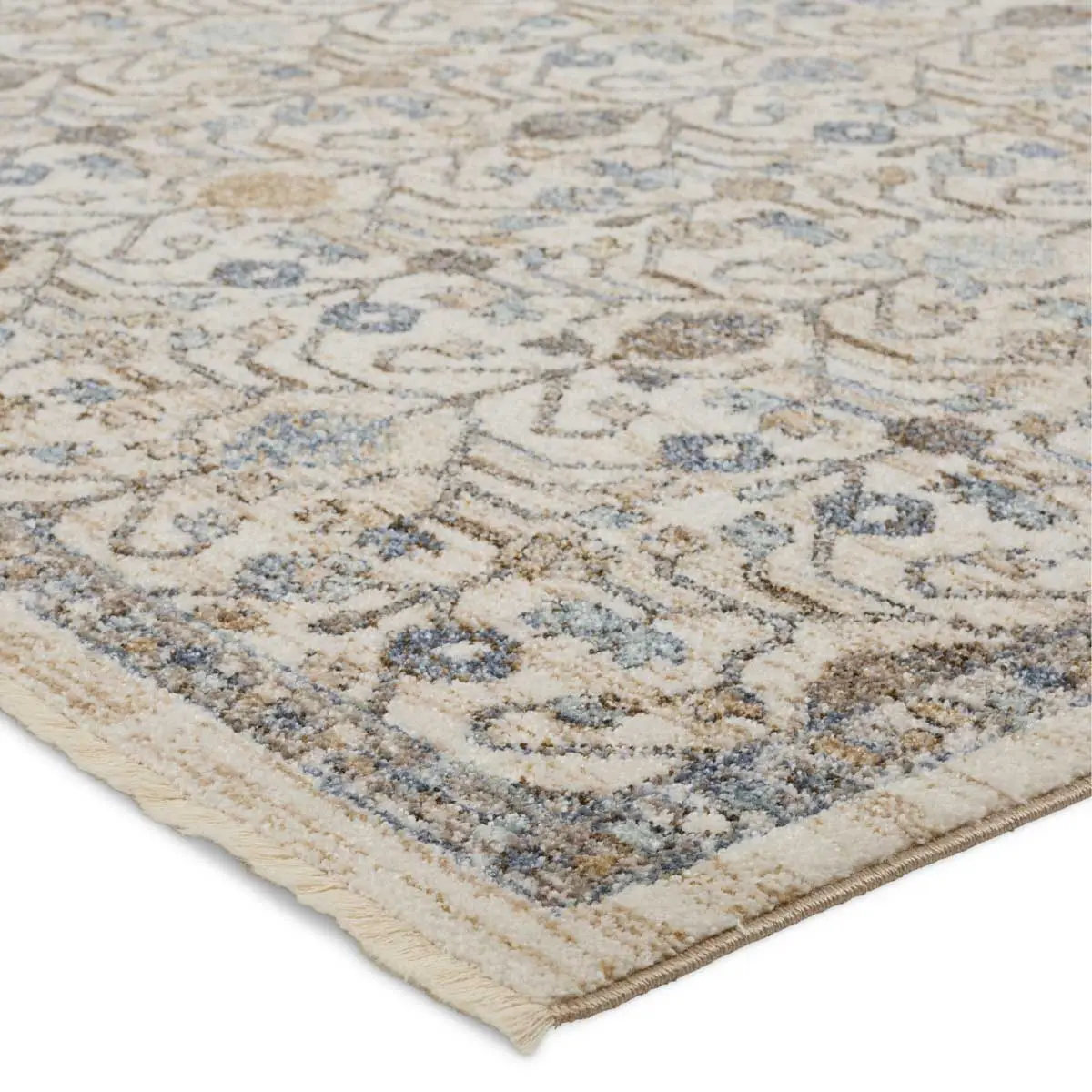 Inspired by the distressed perfection of antique textiles, the LARDIR collection is warm and inviting with rich, updated hues. The updated traditional Primrose area rug showcases an intricate, floral trellis design paired with short, cream fringe. The flower details spring to life in hues of blue, gold, brown, cream, and taupe. This indoor rug thrives in high and low trafficked areas of the home such as living rooms, halls, entryways, bedrooms, and dining areas.