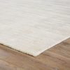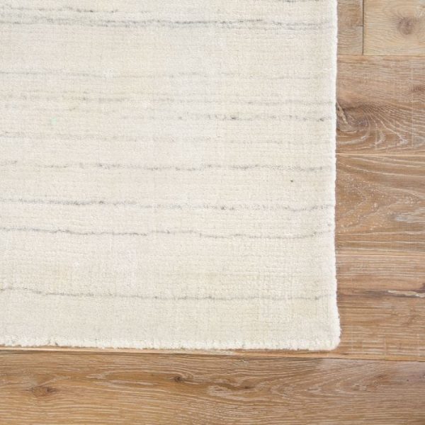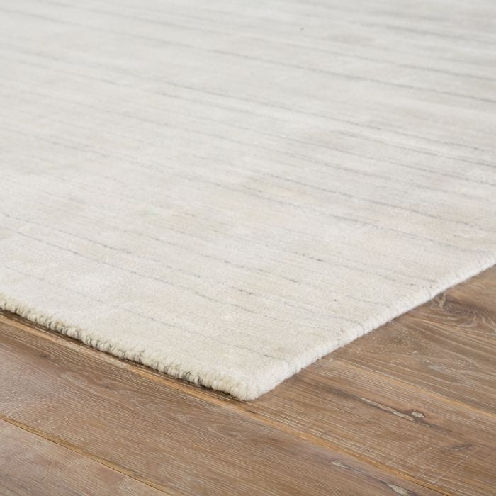 The subtle stripe of this white and gray area rug proves perfectly transitional with the soft impact of a neutral colorway. The wool and viscose blend provides an inviting foundation underfoot, while the hand-loomed construction maintains a timeless quality.