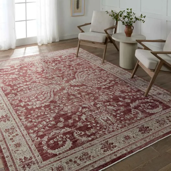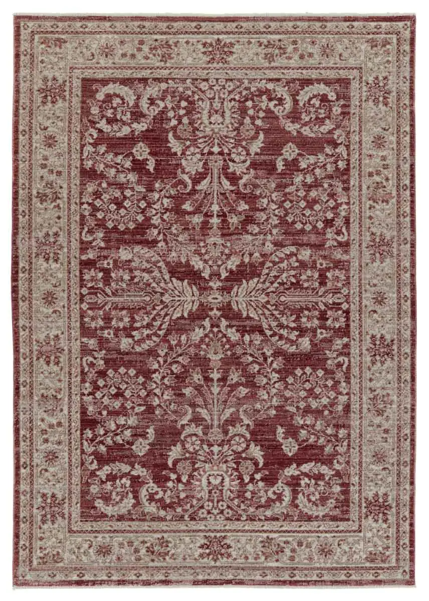 Inspired by fine, handcrafted designs of rugs from Afghanistan, the LEIDIR collection makes traditional beauty accessible. The area rug features a distressed, floral and border design in rich tones of red, light gray, soft green, and cream. This polyester accent is durable and easy-to-clean, offering the perfect grounding accent to homes with pets or kids. This indoor rug works perfectly in high traffic areas such as living rooms, halls, entryways, and dining areas.