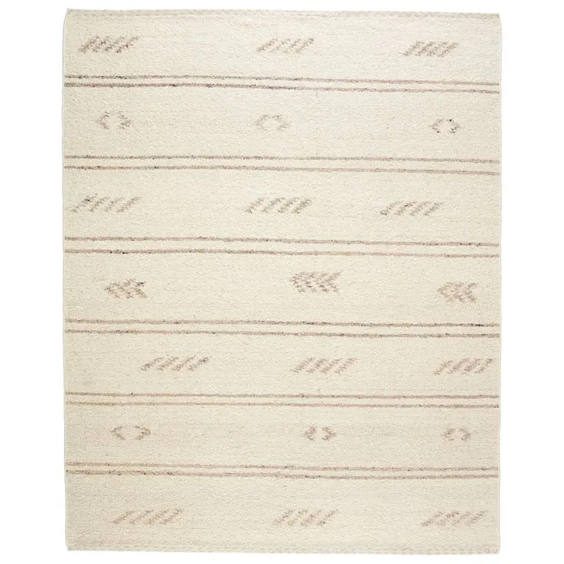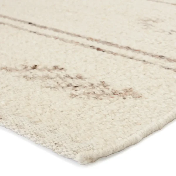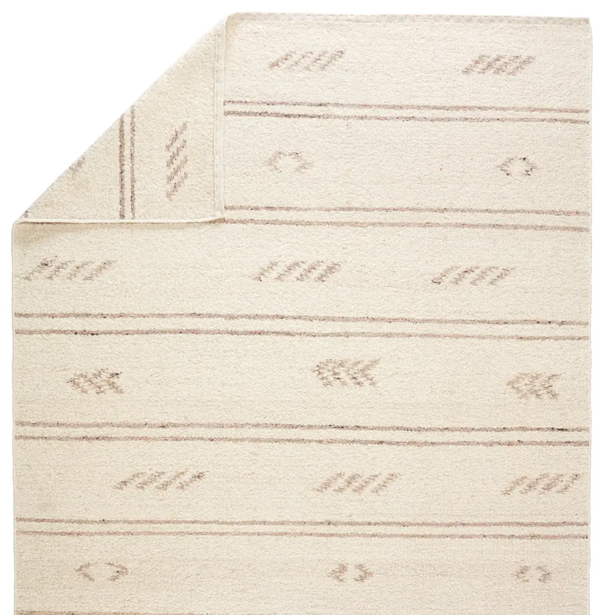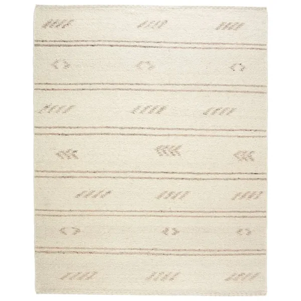 The texture-rich LEODIR collection offers an assortment of updated kilim looks, re-invented with the on-trend shearling style and neutral, modern palettes. The handwoven rug features a globally inspired, light brown, stripe and tribal pattern on a neutral cream base. This 100% wool accent piece delights in high and low traffic spaces such as bedrooms, living areas, dining rooms, halls, sitting rooms, and entryways.