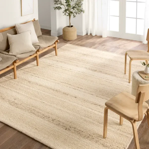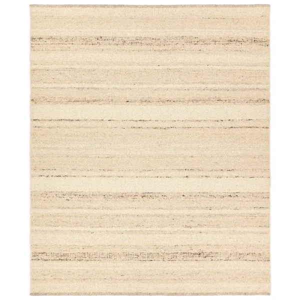 The texture-rich LEODIR collection offers an assortment of updated kilim looks, re-invented with the on-trend shearling style and neutral, modern palettes. The handwoven rug features a tan base with brown and beige stripes. This 100% wool accent piece delights in high and low traffic spaces such as bedrooms, living areas, dining rooms, halls, sitting rooms, and entryways.