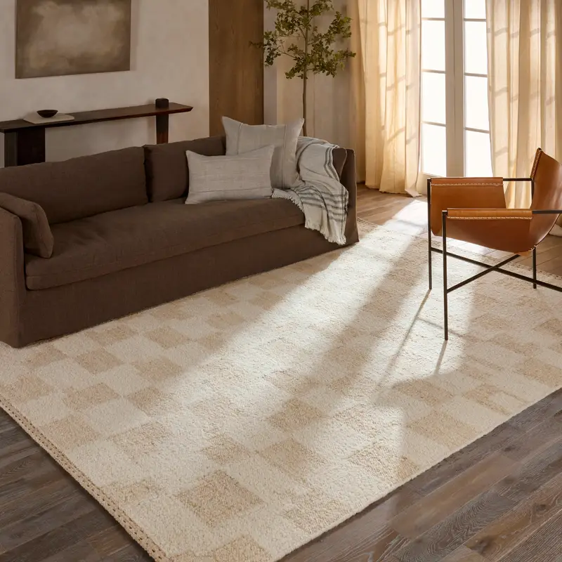 Eye-catching yet timeless, the LEODIR enhances every space and style. With a classic checkered pattern in a neutral colorway, this handcrafted, 100% wool rug will complement any aesthetic. The texture-rich collection offers an assortment of updated kilim looks, re-invented and is a great fit for medium traffic spaces such as bedrooms, living areas, dining rooms, halls, sitting rooms, and entryways.