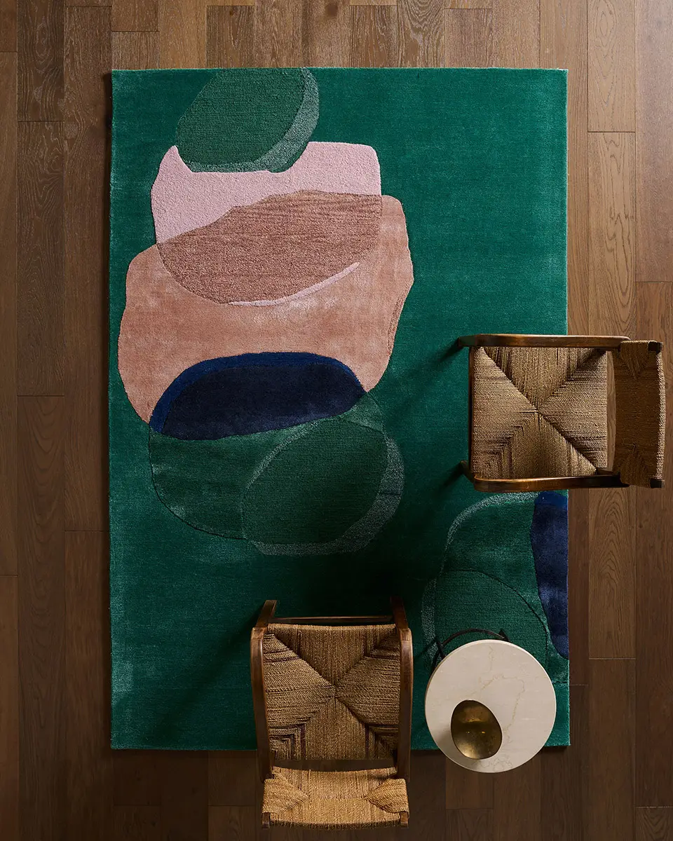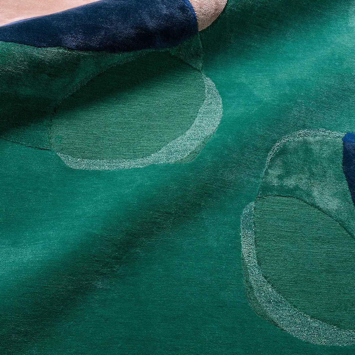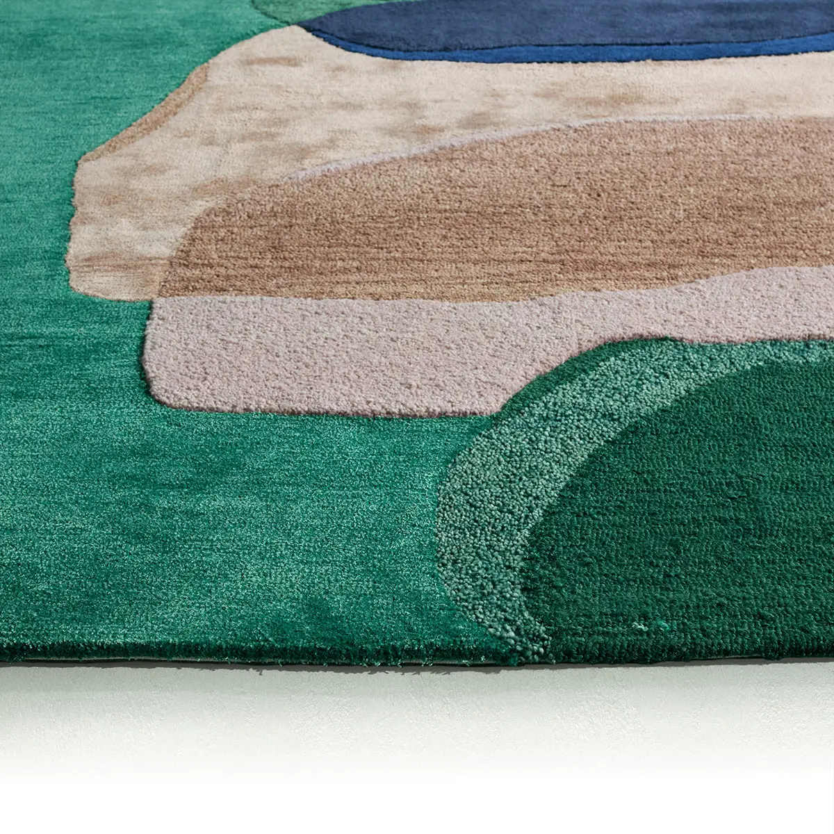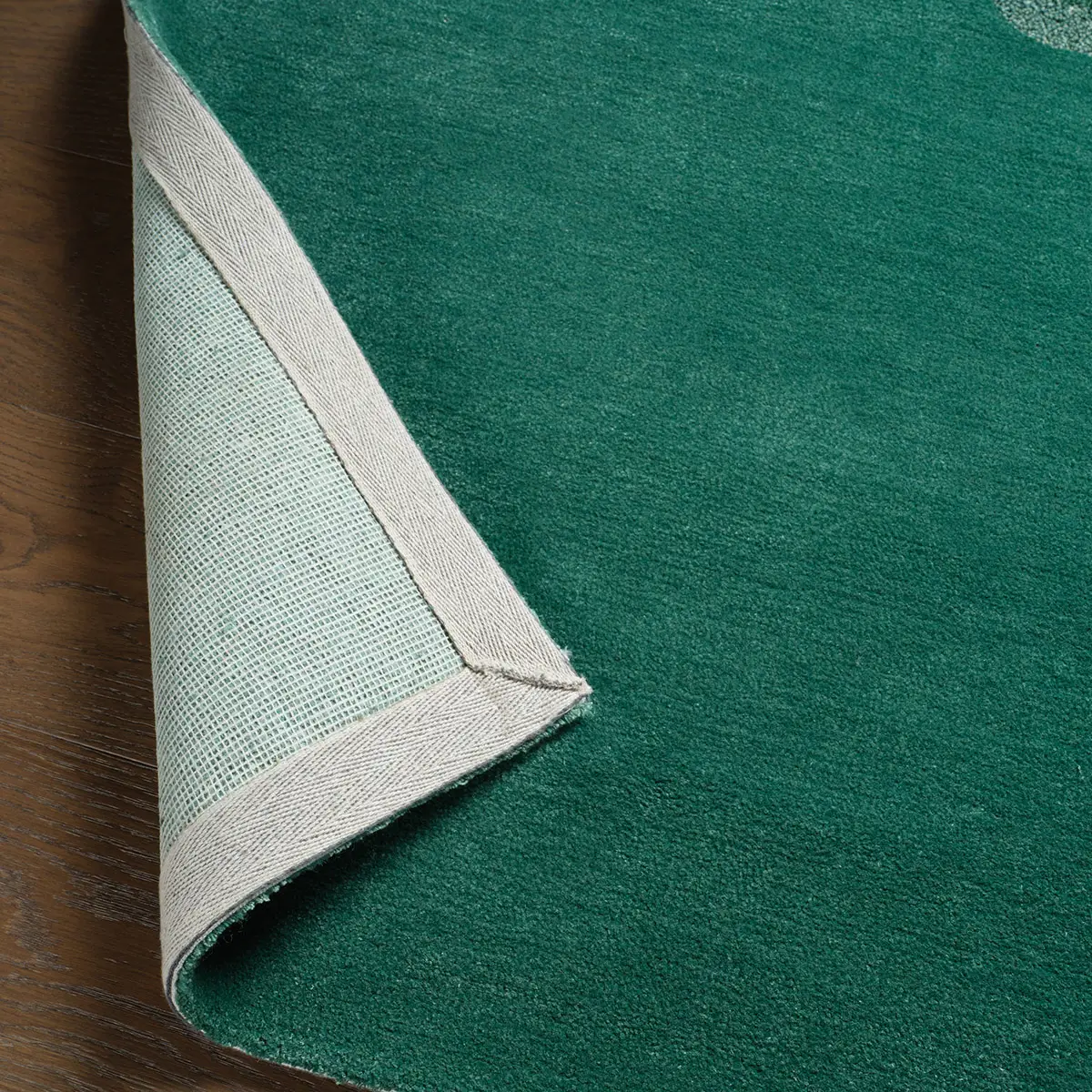 The LYDDIR design presents a sophisticated abstract statement. Hand tufted with an exquisite high low pile, it features a beautiful sea green tones creating inviting softness underfoot and a magnificent, light catching sheen for lasting appeal.