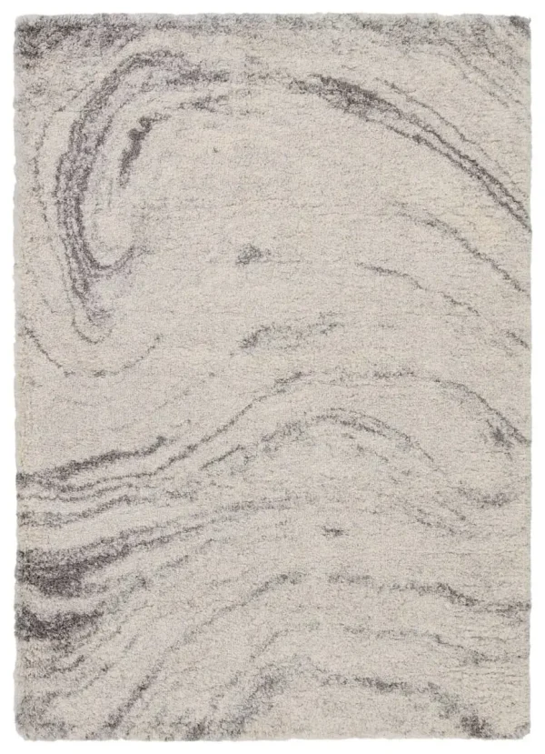 The LYRDIR collection boasts a modern interpretation of the classic shag style. In a tonal gray, cream, and beige colorway, the rug showcases a contemporary agate motif on rich, plush pile. This rug is power loomed of durable and easy-care polypropylene for a virtually shed-free accent. Perfect for mid-traffic areas of the home, this rug thrives in bedrooms, formal living areas, and sitting rooms.