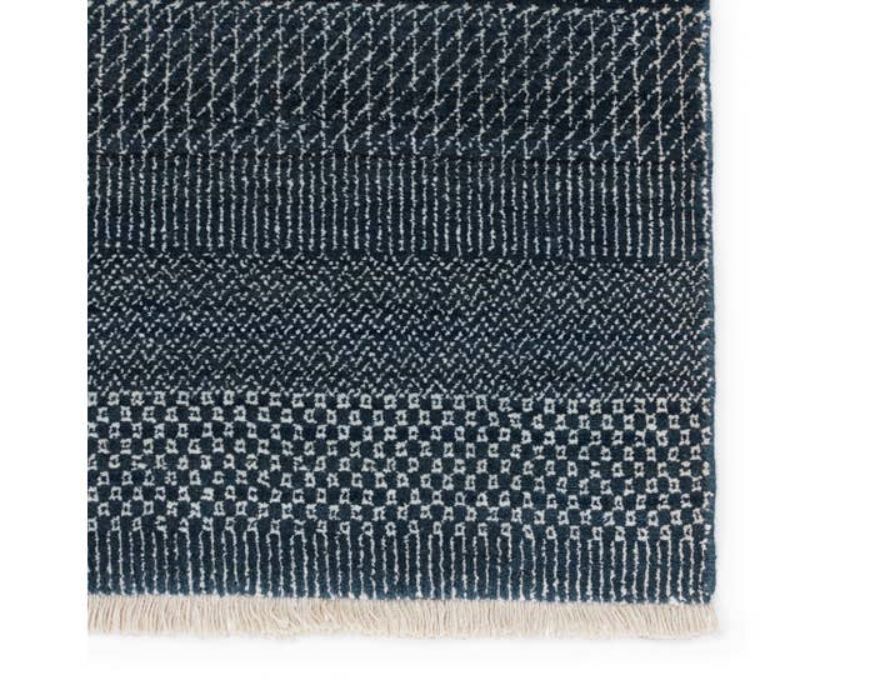 This collection brings texture to any room with fine-lined grass patterns and on-trend colorways. The plush and luxuriously dense wool and viscose pile emulates a handmade feel, while the precision of the power-loomed construction proves eye-catching and impressively rich with detail. Boasting a deep blue and ivory colorway for a rich and moody addition to any room.