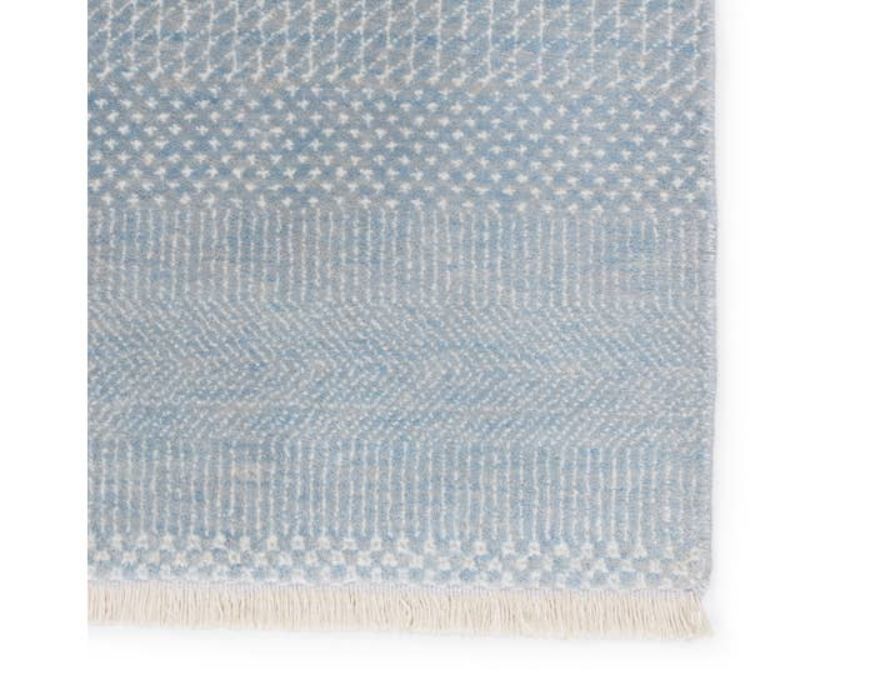 This collection brings texture to any room with fine-lined grass patterns and on-trend colorways. The plush and luxuriously dense wool and viscose pile emulates a handmade feel, while the precision of the power-loomed construction proves eye-catching and impressively rich with detail. Boasting a light blue and ivory colorway for a light and airy addition to any room.