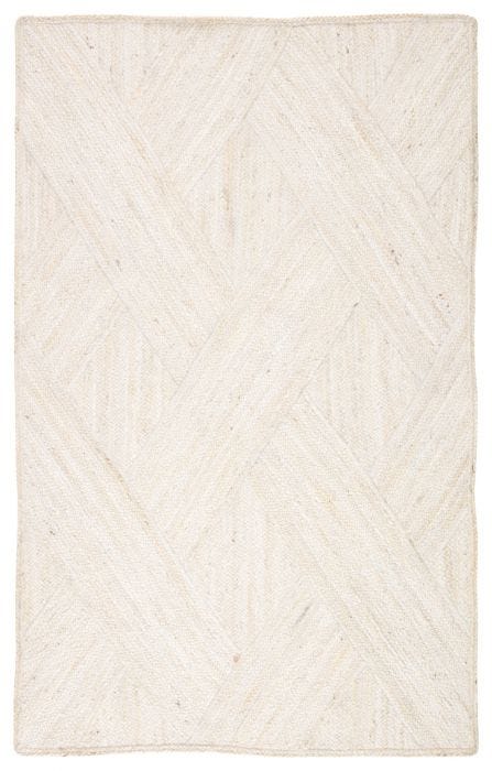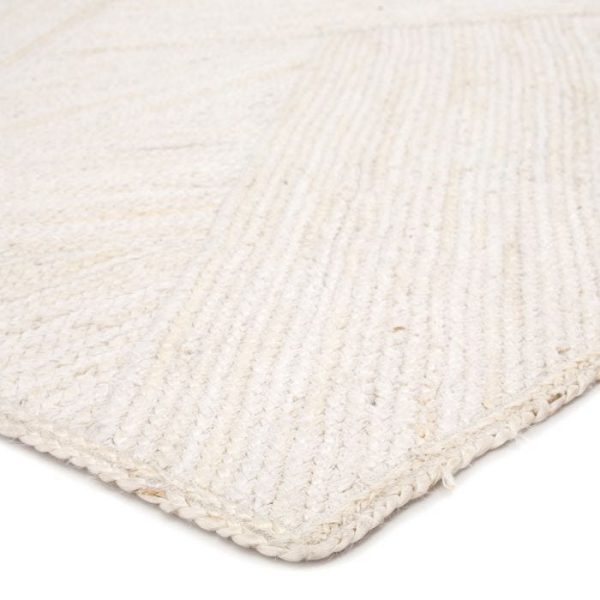 Delivering rich texture and organic allure to contemporary homes. The area rug showcases a distinctive diagonal weave design, hand woven of bleached jute fibers. The white colorway of this stunning natural lends a chic, contemporary vibe to any space.