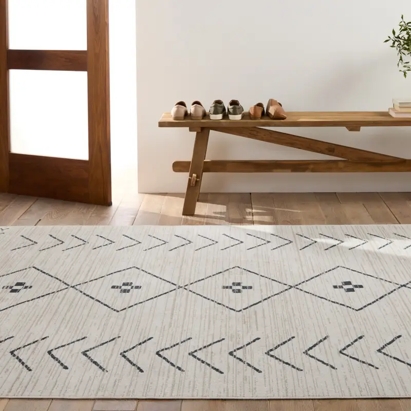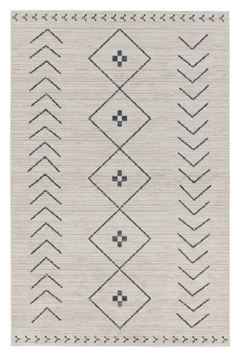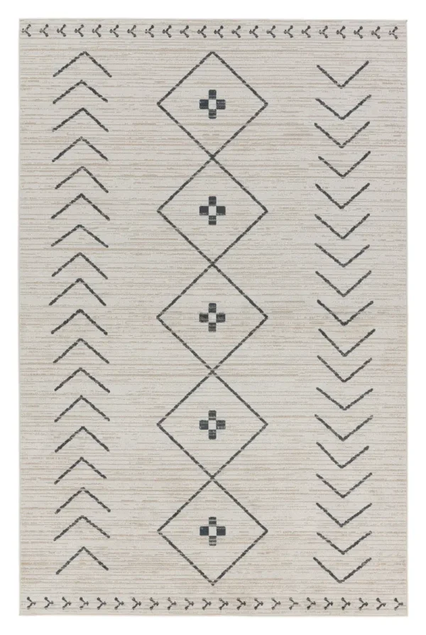 The incredibly chic NDNDIR collection offers durability and easy-care without compromising one bit on the style. This kid and pet-friendly assortment of rugs features a washable quality and a range of globally inspired designs that anchor rooms with eye-catching appeal. The rug showcases a modern Moroccan pattern in dark slate on a cream and tan striated background. The 100% polyester fibers provide a slight sheen and lasting quality that thrives in high traffic areas of the home such as kitchens, halls, bathrooms, living rooms, and bedrooms.