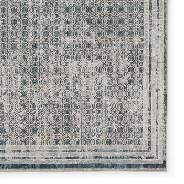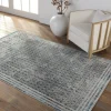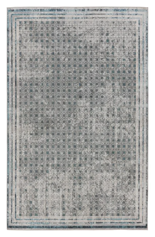 The incredibly chic NDNDIR collection offers durability and easy-care without compromising one bit on the style. This kid and pet-friendly assortment of rugs features a washable quality and a range of globally inspired designs that anchor rooms with eye-catching appeal. The rug showcases a distressed trellis pattern in blue on a light gray background with hints of gold and cream. The 100% polyester fibers provide a slight sheen and lasting quality that thrives in high traffic areas of the home such as kitchens, halls, bathrooms, living rooms, and bedrooms.