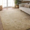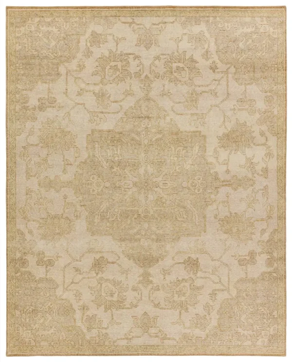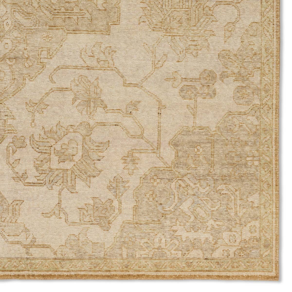 The ONEDIR collection marries traditional motifs with soft, subdued colorways for the perfect blend of fresh and time-honored style. These hand-knotted wool rugs feature a hand-sheared quality that lends the design a coveted vintage impression. The rug features a distressed, floral pattern in hues of tan, gold, taupe, cream, and hints of green. The low, wool pile proves easy-to-clean, perfect for any room of the home.