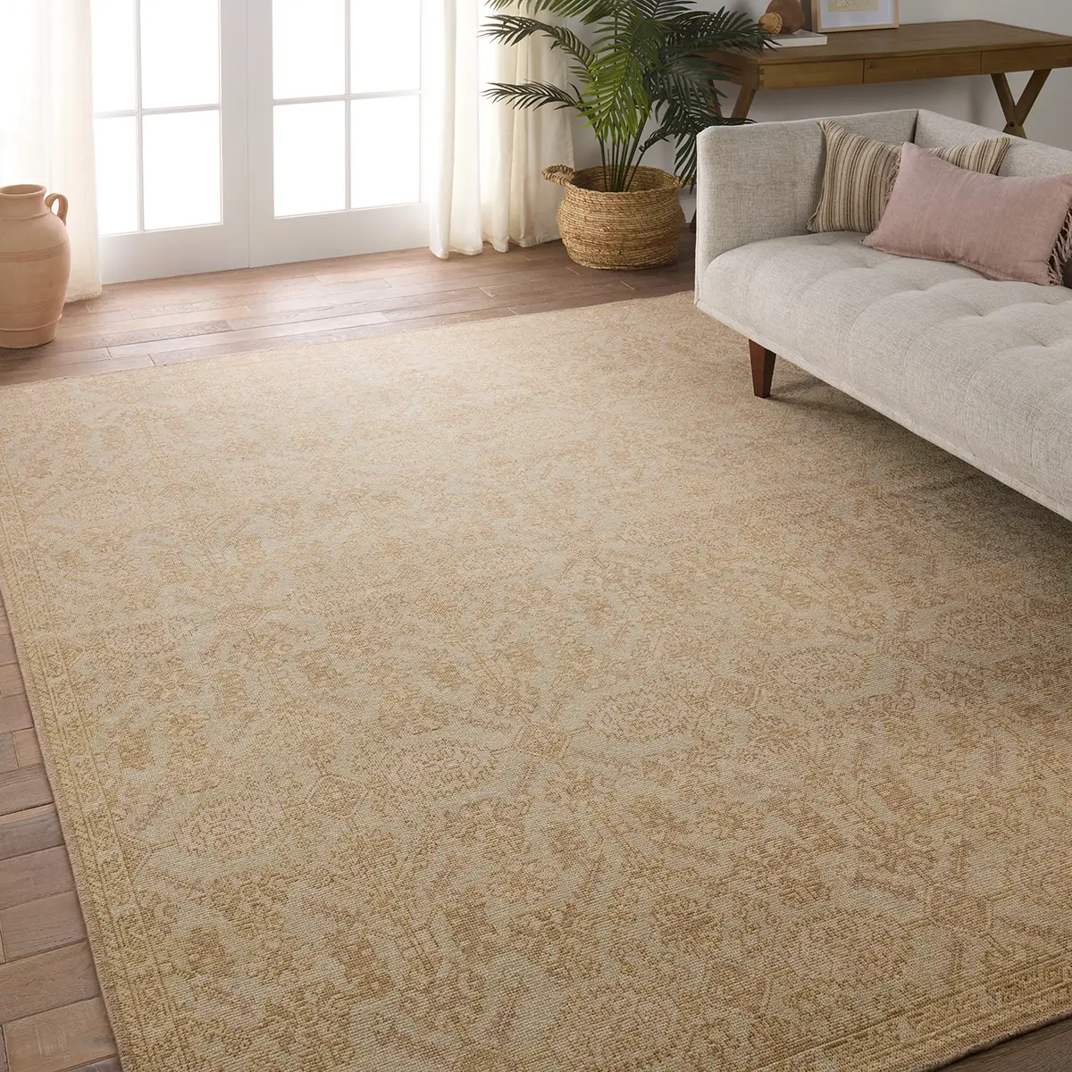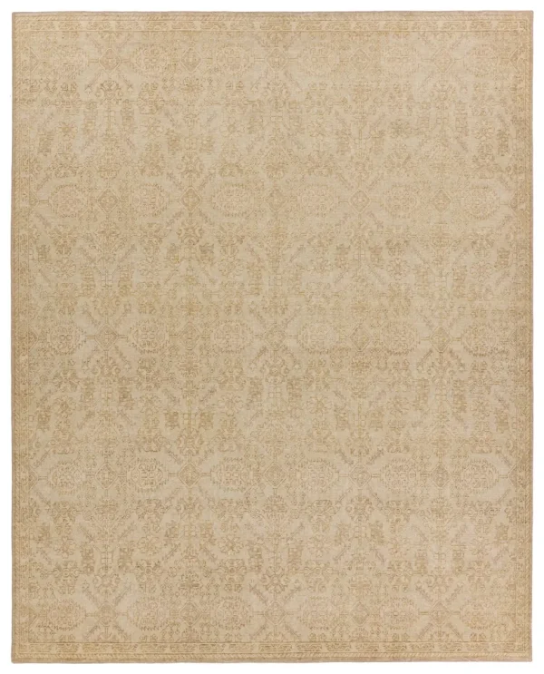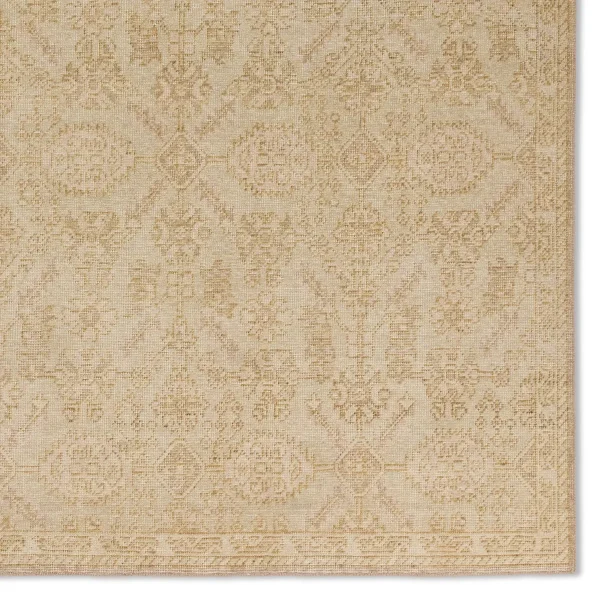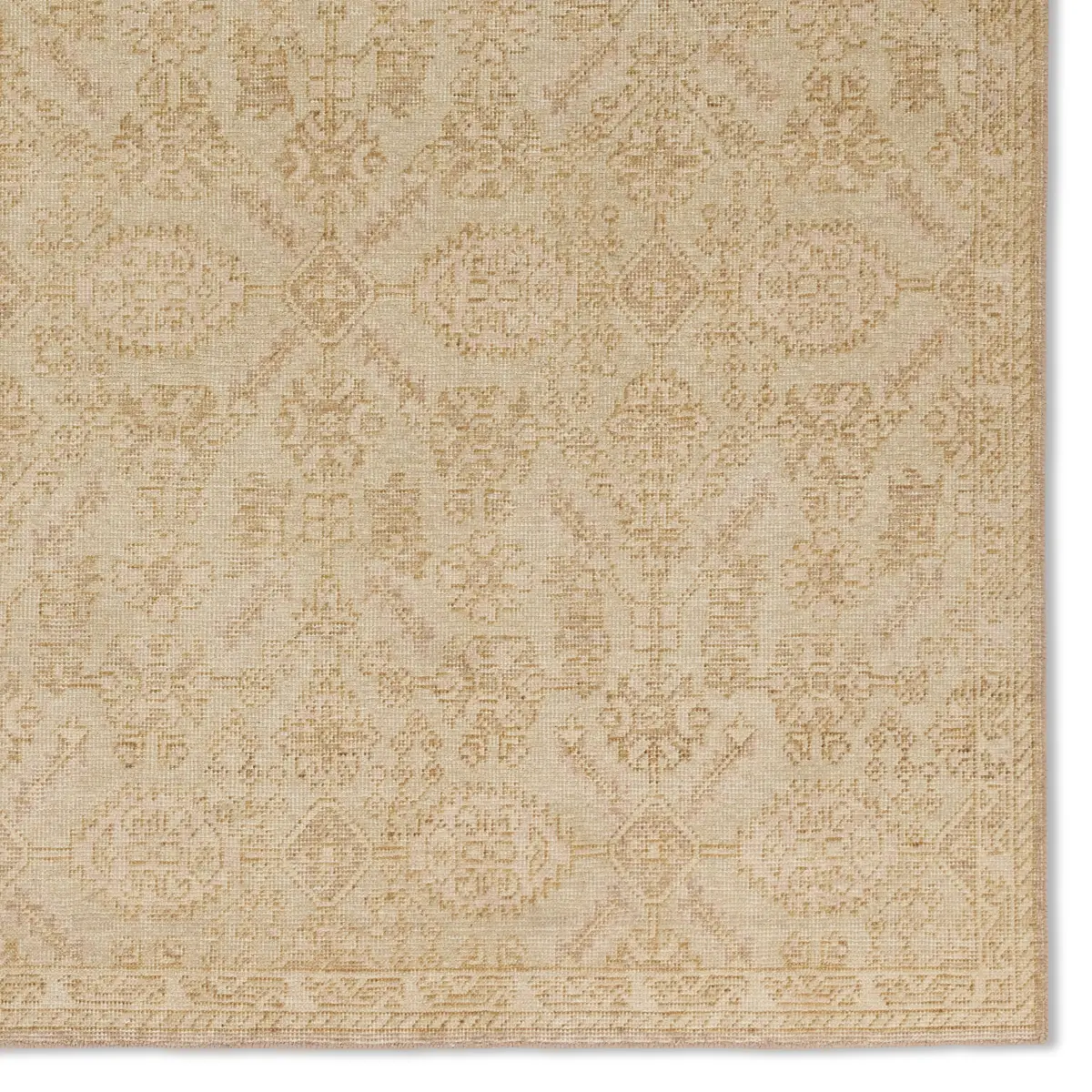 The ONEDIR collection marries traditional motifs with soft, subdued colorways for the perfect blend of fresh and time-honored style. These hand-knotted wool rugs feature a hand-sheared quality that lends the design a coveted vintage impression. The rug features a distressed, floral trellis pattern in hues of gold, tan, and taupe. The low, wool pile proves easy-to-clean, perfect for any room of the home.