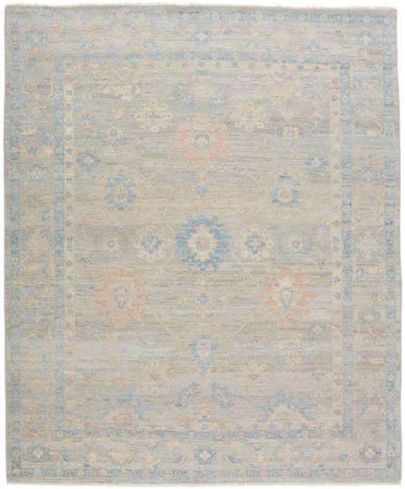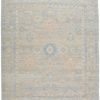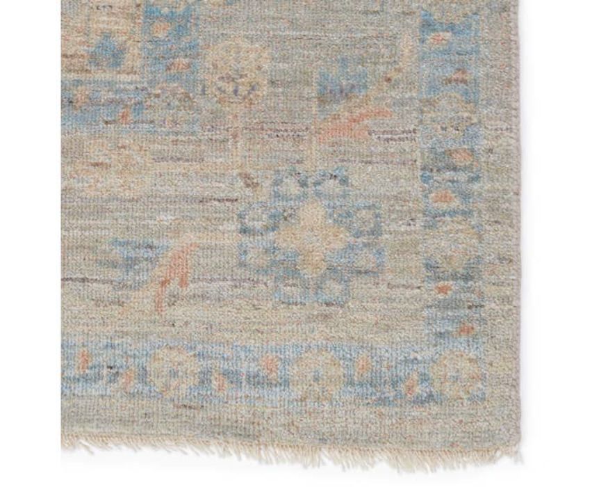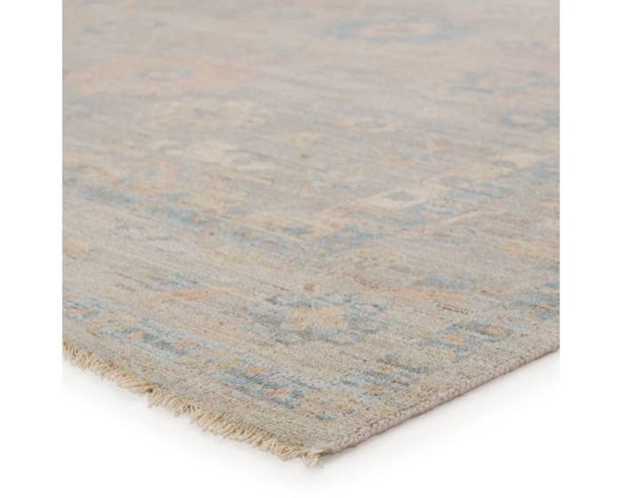 This collection features heirloom-quality designs of muted and uniquely updated Old World patterns. Boasting a beautifully washed medallion motif with an antique Oushak-inspired vibe. The light gray tone is accented with cool blue, warm beige, and light terracotta hues for added depth and intrigue. This hand-knotted wool rug anchors living spaces with a fresh take on vintage style.